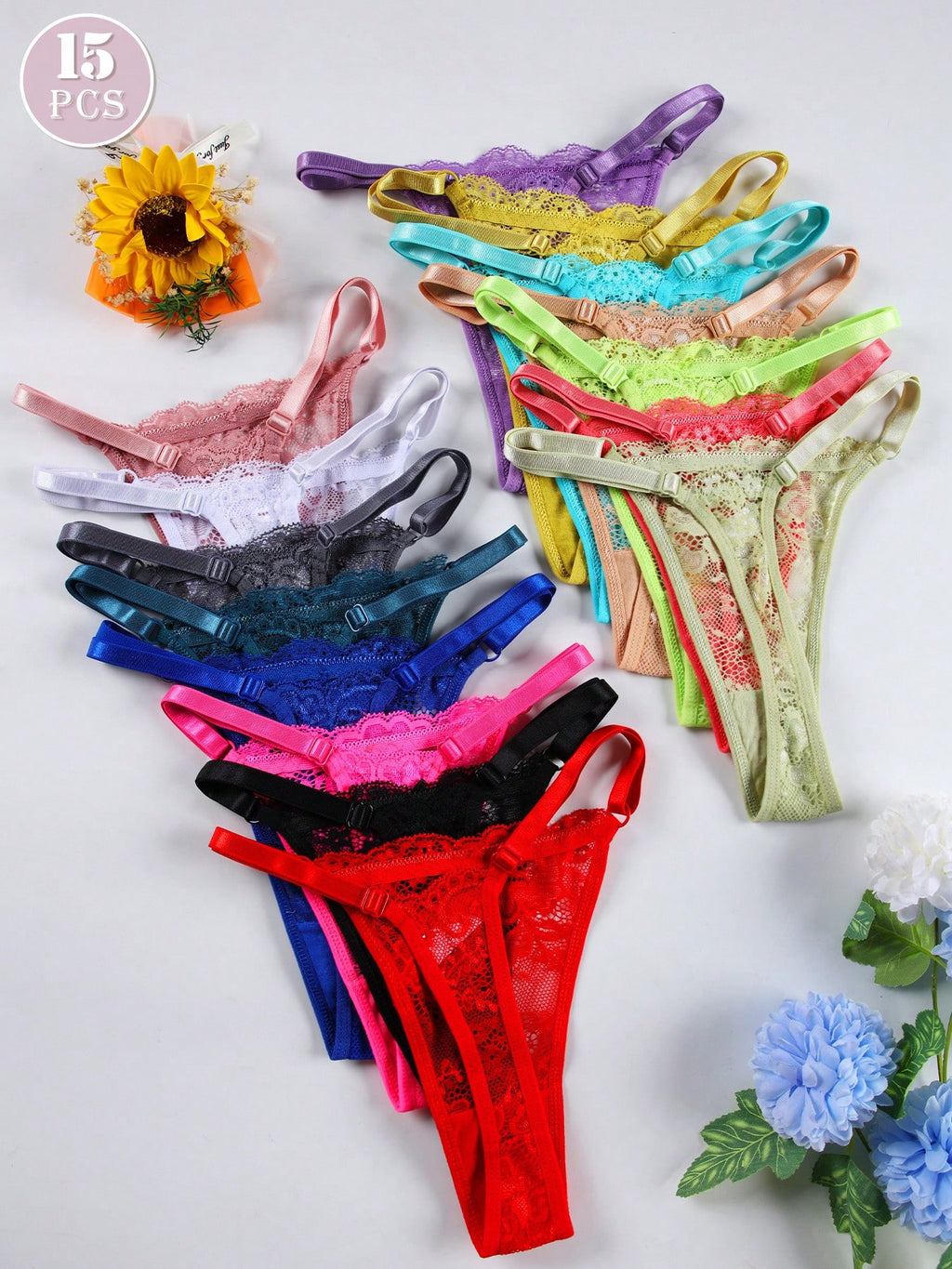 🌈 [Multicolor Set:] With 15 different colors, you'll never run out of options. Seriously, this Candy Lace Thongs Sexy Adjustable 15Piece Set matches every outfit. Mix and match your fits to keep the vibe going all day, erryday.