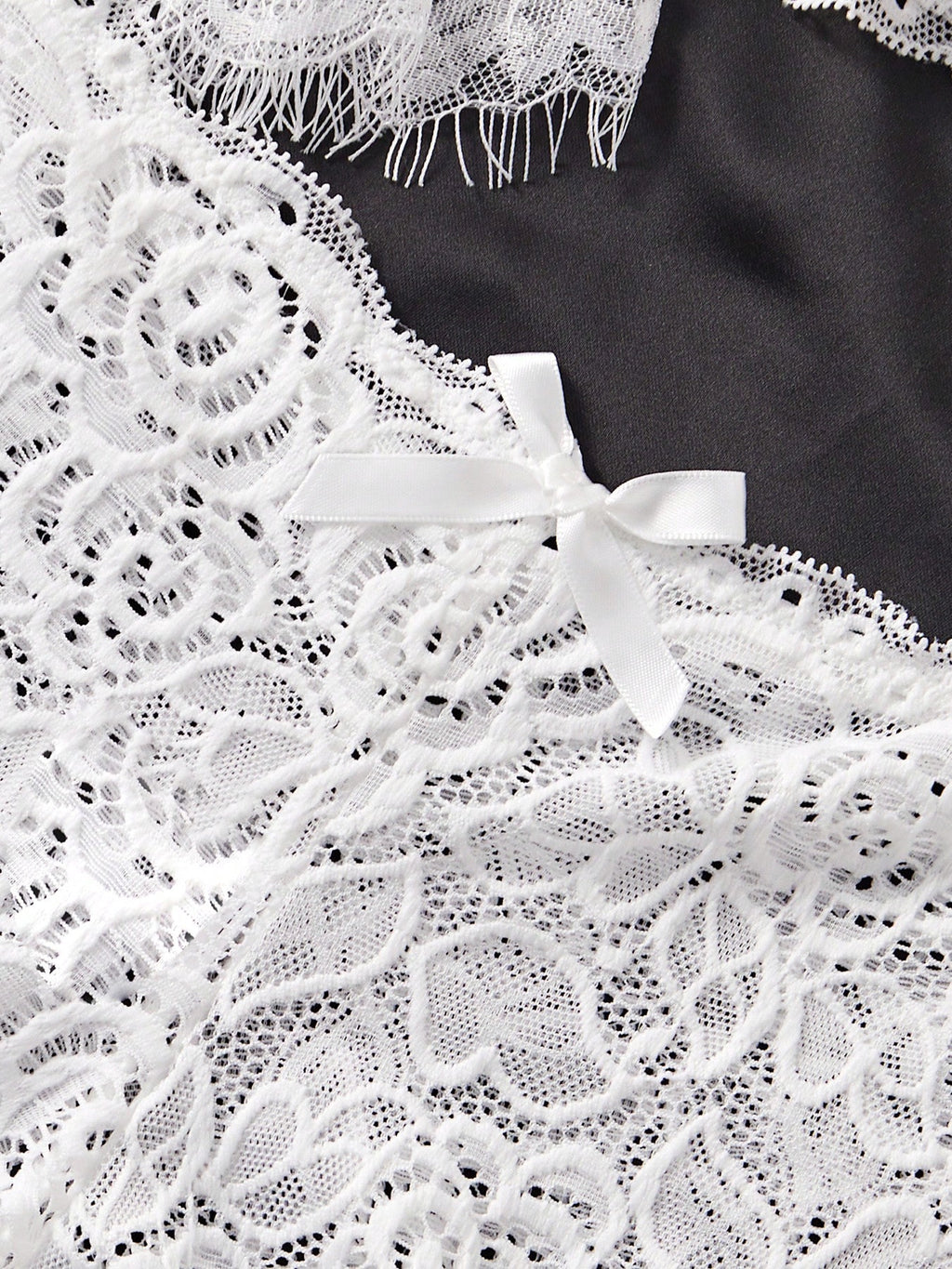 [Effortless Slay:] Want to turn heads without even trying? This set is your secret weapon. The delicate lace detailing and the sheer panels create a look that's both flirty and sophisticated. Whether you're rocking it for a special occasion or just chilling at home, you're guaranteed to feel like a queen. It's the kind of outfit that makes you want to take a million selfies. Like, yasss queen!
