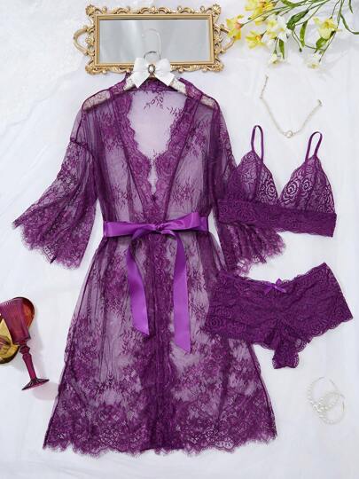 Okay, fam, listen up! This isn't just any lingerie set; it's a whole vibe. We're talking next-level confidence and effortless slay, all wrapped up in delicate lace. Imagine slipping into something that makes you feel like that girl – the one who knows her worth, the one who turns heads without even trying. This three-piece set is designed to hug your curves in all the right places, accentuating your natural assets without feeling like you're trying too hard. The intricate lace detailing adds a touch of fantasy-gorgeousness, while the sheer panels give a peek-a-boo effect that's both flirty and sophisticated. So, ditch the basic and embrace your inner goddess – because you deserve to feel this good, like, always. This set is perf for channeling your inner confidence!