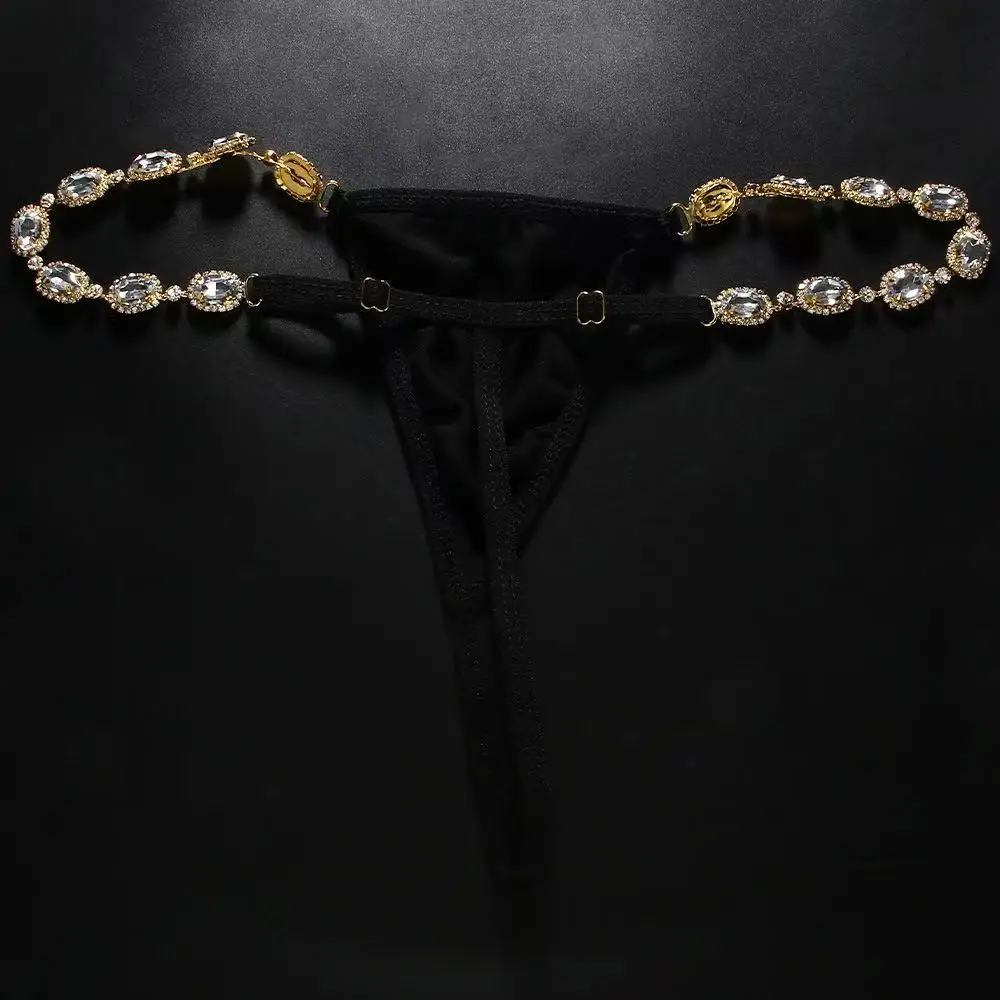 Rhinestone Splicing Thong Bikini Underwear Women Sexy Fabric Thong Panties Accessories Beach Underwear Body Jewelry