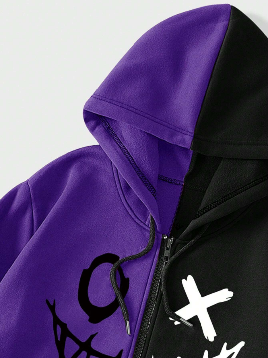 Color: Multicolor Style: Casual Type: Zip Up Pattern Type: Cartoon, Colorblock Details: Drawstring, Pocket, Zipper Neckline: Hooded Sleeve Length: Long Sleeve Sleeve Type: Regular Sleeve, Drop Shoulder Length: Regular Fabric: Slight Stretch Material: Fabric Composition: 100% Polyester Care Instructions: Machine wash or professional dry clean Temperature: Winter <10℃/50℉ Lined For Added Warmth: Yes Sheer: No