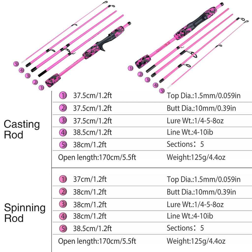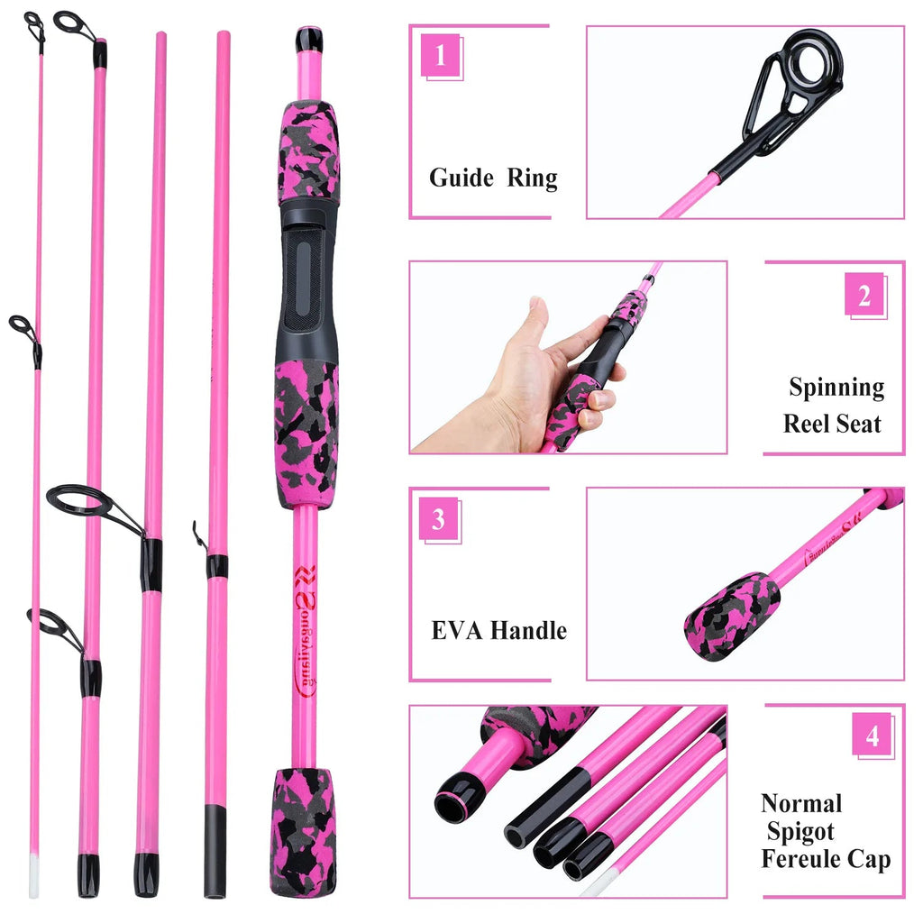 Sougayilang 5 Section Spinning Casting Fishing Rod 1.8M Strong and Lightweight Poles for Travel Freshwater Fishing Pesca