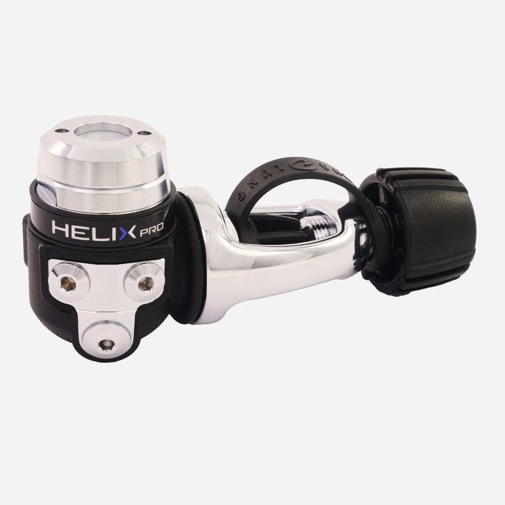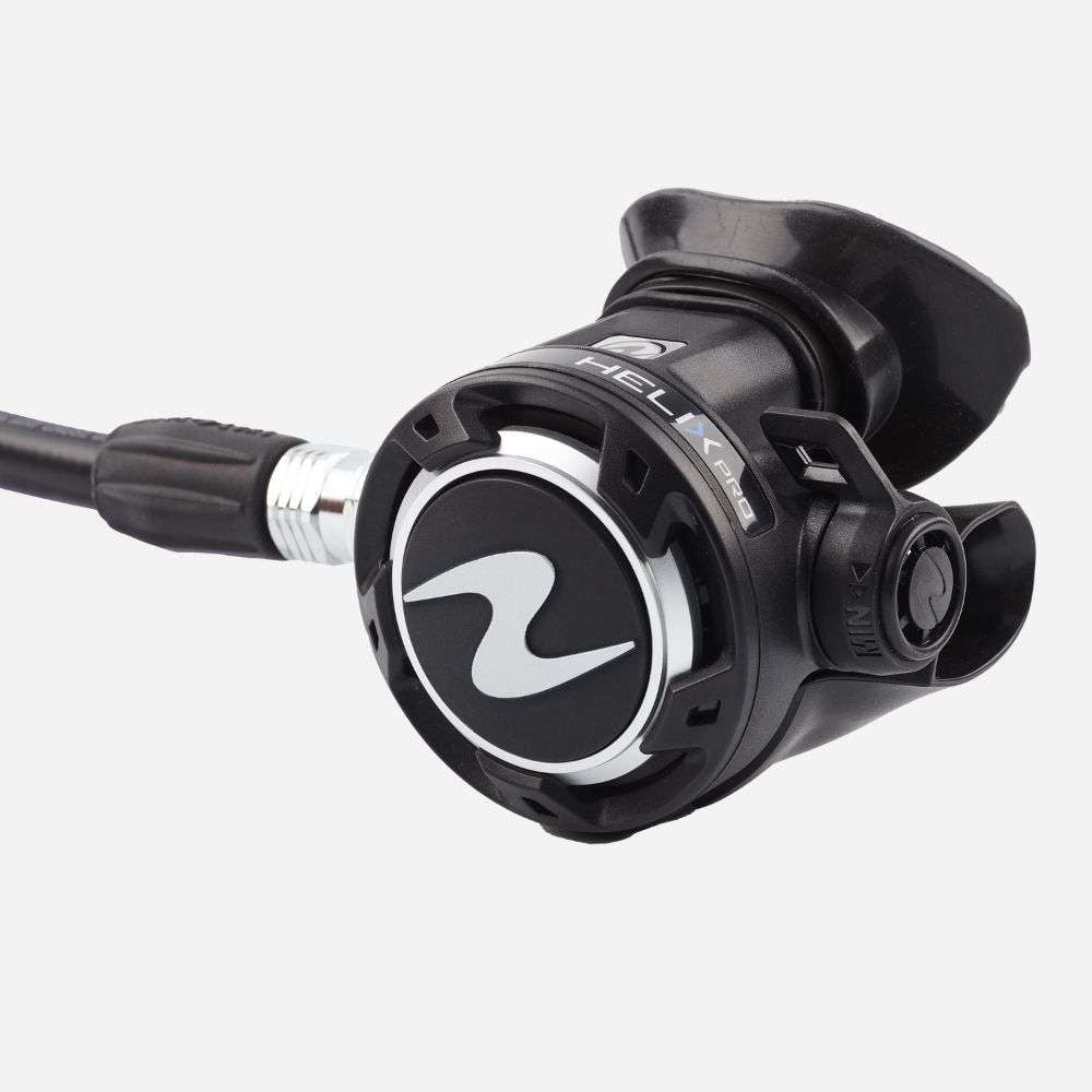 The Helix Pro mid-range regulator embodies the DNA of Aqualung's technical excellence. Representing our core range, it offers superior breathing performance with its balanced first and second stages. Featuring patented ACD technology, the first stage remains fully protected even when not under pressure, ensuring durability. The Helix Pro is the epitome of value, designed for the coming years and serviced every 2 years for optimal performance. Designed and made in France.