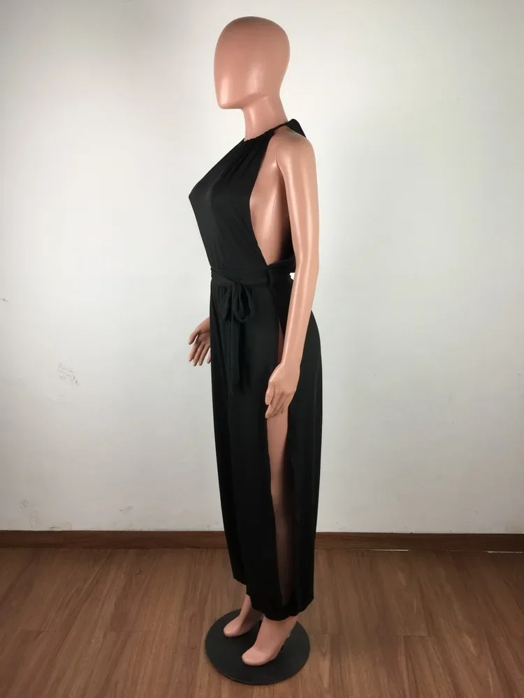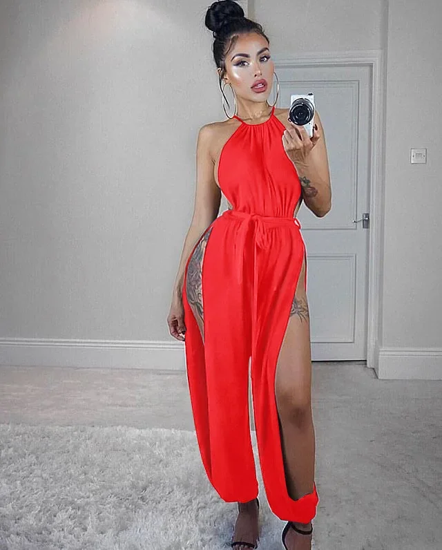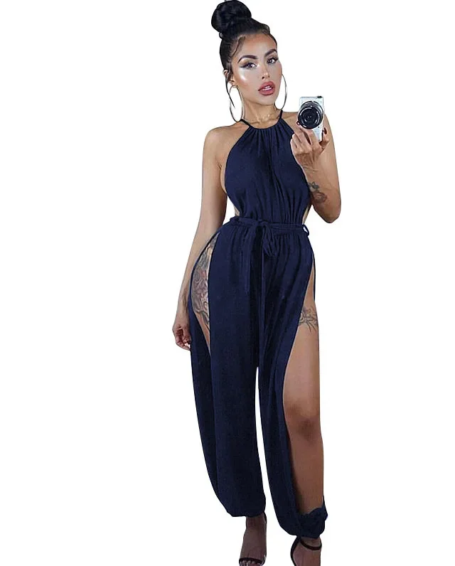 OKAYOASIS Sexy Women O-neck Hollow Out Party Jumpsuit Elegant Solid Loose Casual Jumpsuit Romper