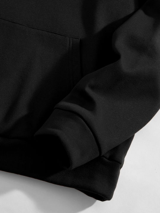 Color: Black Style: Street Type: Pullovers Pattern Type: Slogan Details: Pocket Neckline: Hooded Sleeve Length: Long Sleeve Sleeve Type: Regular Sleeve Length: Regular Fit Type: Regular Fit Fabric: Slight Stretch Material: Knitted Fabric Composition: 100% Polyester Care Instructions: Machine wash or professional dry clean Temperature: Spring/Fall 18-25℃/63-77℉ Sheer: No