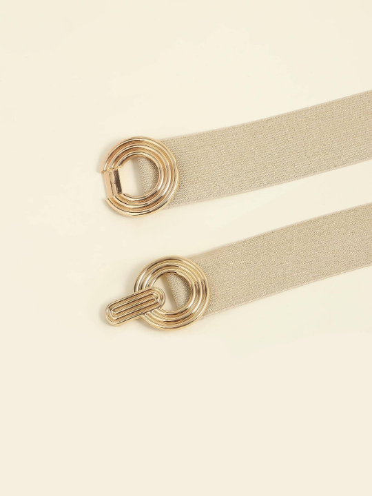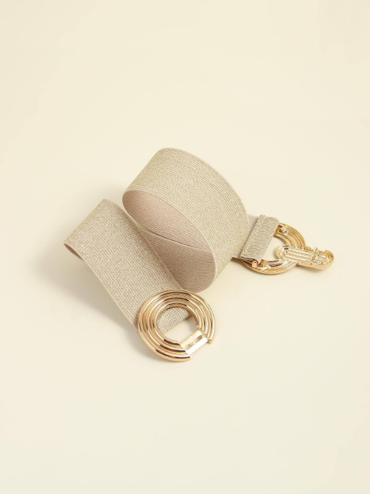 Color: Beige Buckle Type: Symmetrical Buckle Belts Width: Wide Belt Stretch: Medium Stretch Material: Elastic Composition: 100% Polyester