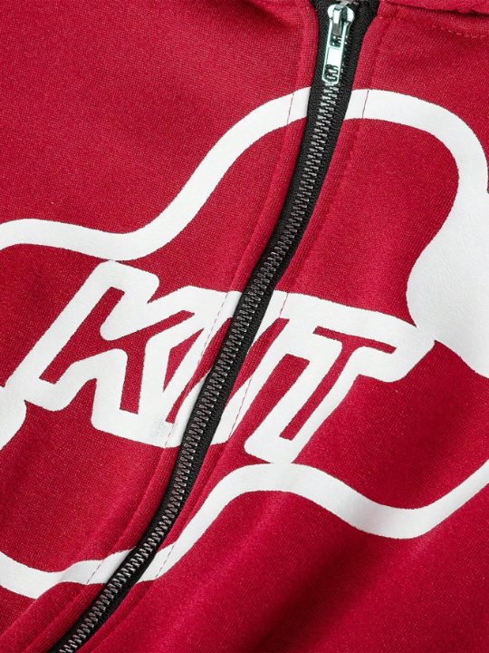 Color: Red Style: Casual Type: Zip Up Pattern Type: Graphic, Letter Details: Drawstring, Pocket, Zipper Neckline: Hooded Sleeve Length: Long Sleeve Sleeve Type: Regular Sleeve Length: Regular Fit Type: Loose Fabric: Non-Stretch Material: Knitted Fabric Composition: 95% Polyester, 5% Elastane Care Instructions: Machine wash or professional dry clean Temperature: Late Fall 10-17℃/50-63℉ Sheer: No