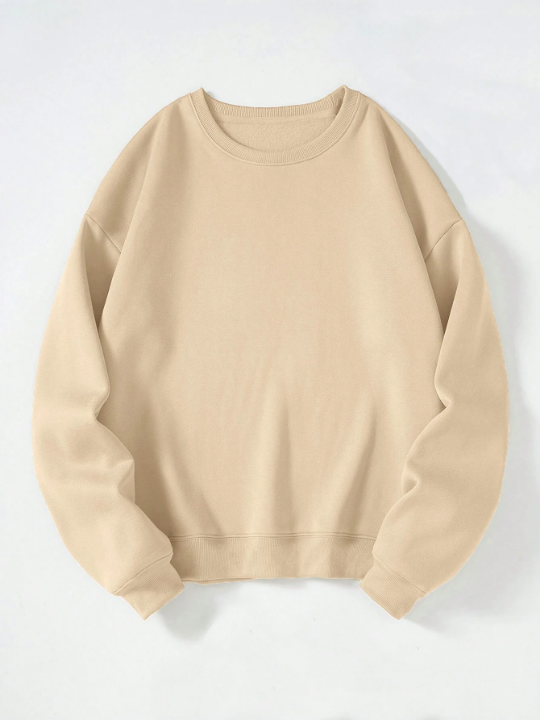 Color: Apricot Style: Casual Type: Pullovers Pattern Type: Plain Neckline: Round Neck Sleeve Length: Long Sleeve Sleeve Type: Drop Shoulder Length: Regular Fit Type: Regular Fit Fabric: Non-Stretch Material: Fabric Composition: 100% Polyester Care Instructions: Machine wash or professional dry clean Temperature: Spring/Fall 18-25℃/63-77℉ Sheer: No