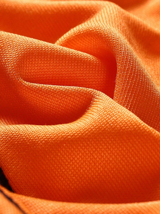 Color: Orange Style: Basics Pattern Type: Letter Details: Tape, Contrast Binding Fabric: Medium Stretch Material: Knitted Fabric Composition: 95% Polyester, 5% Elastane Care Instructions: Machine wash or professional dry clean