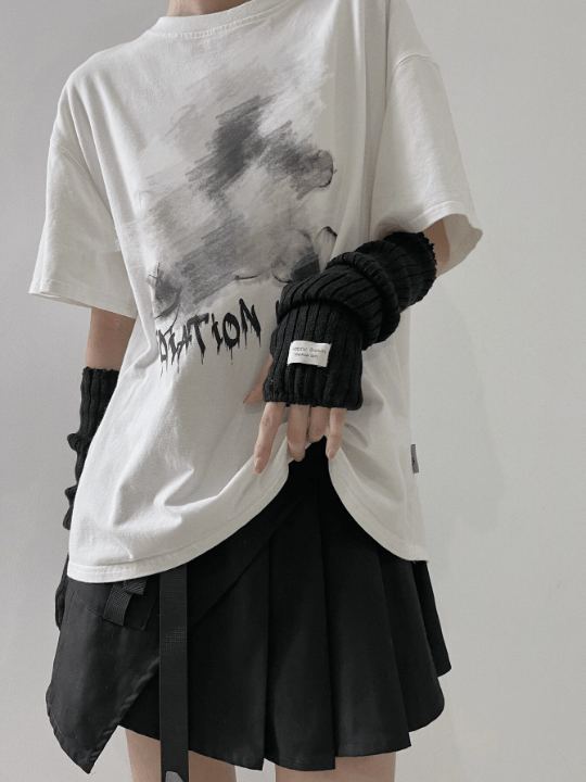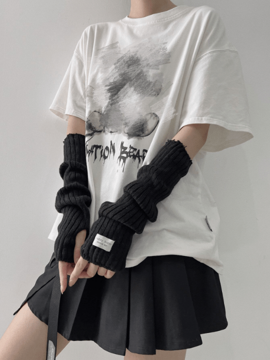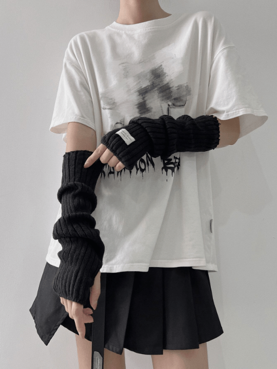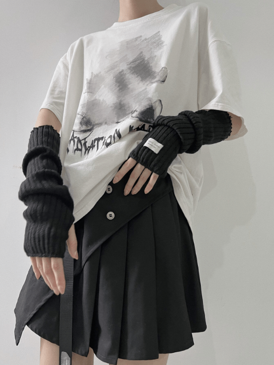 1 Pair Arm Warmers With Fabric Label Decor For Women, Ideal For Everyday, Dating, Home And Outdoor Use With Punk Rock And Y2k Element