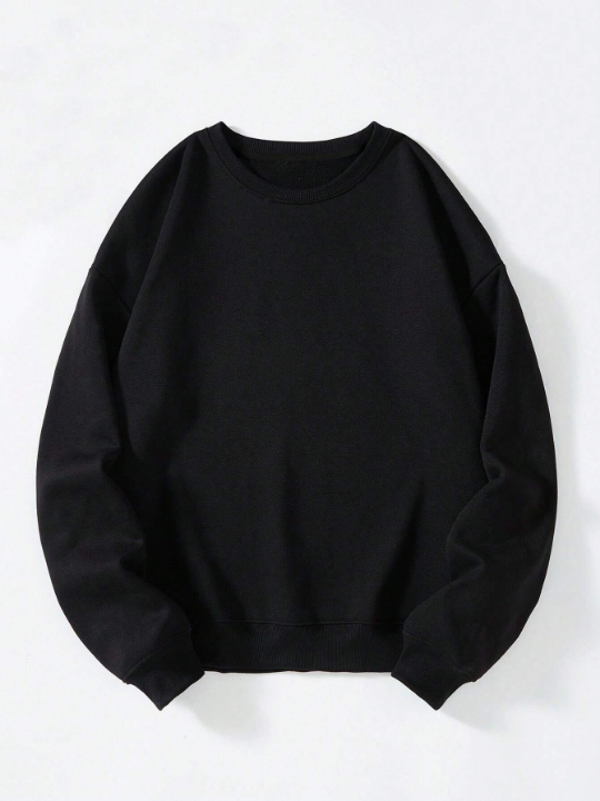 Color: Black Style: Casual Type: Pullovers Pattern Type: Plain Neckline: Round Neck Sleeve Length: Long Sleeve Sleeve Type: Drop Shoulder Length: Regular Fit Type: Regular Fit Fabric: Non-Stretch Material: Fabric Composition: 100% Polyester Care Instructions: Machine wash or professional dry clean Temperature: Spring/Fall 18-25℃/63-77℉ Sheer: No