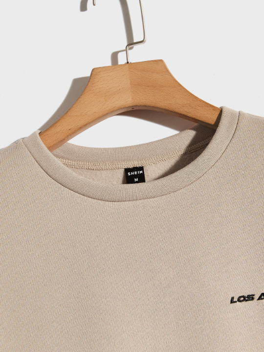 Color: Khaki Style: Casual Type: Pullovers Pattern Type: Letter Details: Embroidery Neckline: Round Neck Sleeve Length: Long Sleeve Sleeve Type: Drop Shoulder Length: Regular Fit Type: Loose Fabric: Slight Stretch Material: Knitted Fabric Composition: 100% Polyester Care Instructions: Machine wash or professional dry clean Temperature: Spring/Fall 18-25℃/63-77℉ Sheer: No