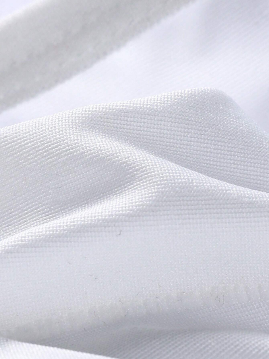 Color: White Style: Basics Pattern Type: Letter Details: Tape, Contrast Binding Fabric: Medium Stretch Material: Knitted Fabric Composition: 95% Polyester, 5% Elastane Care Instructions: Machine wash or professional dry clean
