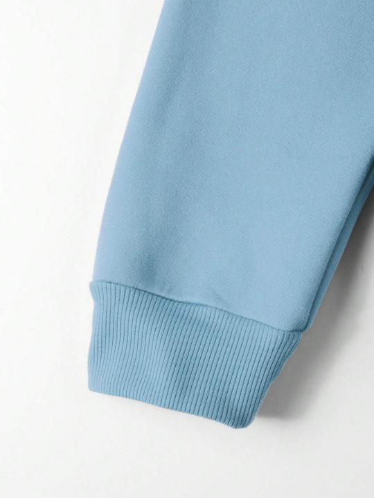 Color: Baby Blue Style: Casual Type: Pullovers Pattern Type: Letter Details: Drawstring, Pocket Neckline: Hooded Sleeve Length: Long Sleeve Sleeve Type: Drop Shoulder Length: Regular Fit Type: Regular Fit Fabric: Slight Stretch Material: Fabric Composition: 100% Polyester Care Instructions: Machine wash or professional dry clean Temperature: Spring/Fall 18-25℃/63-77℉ Sheer: No