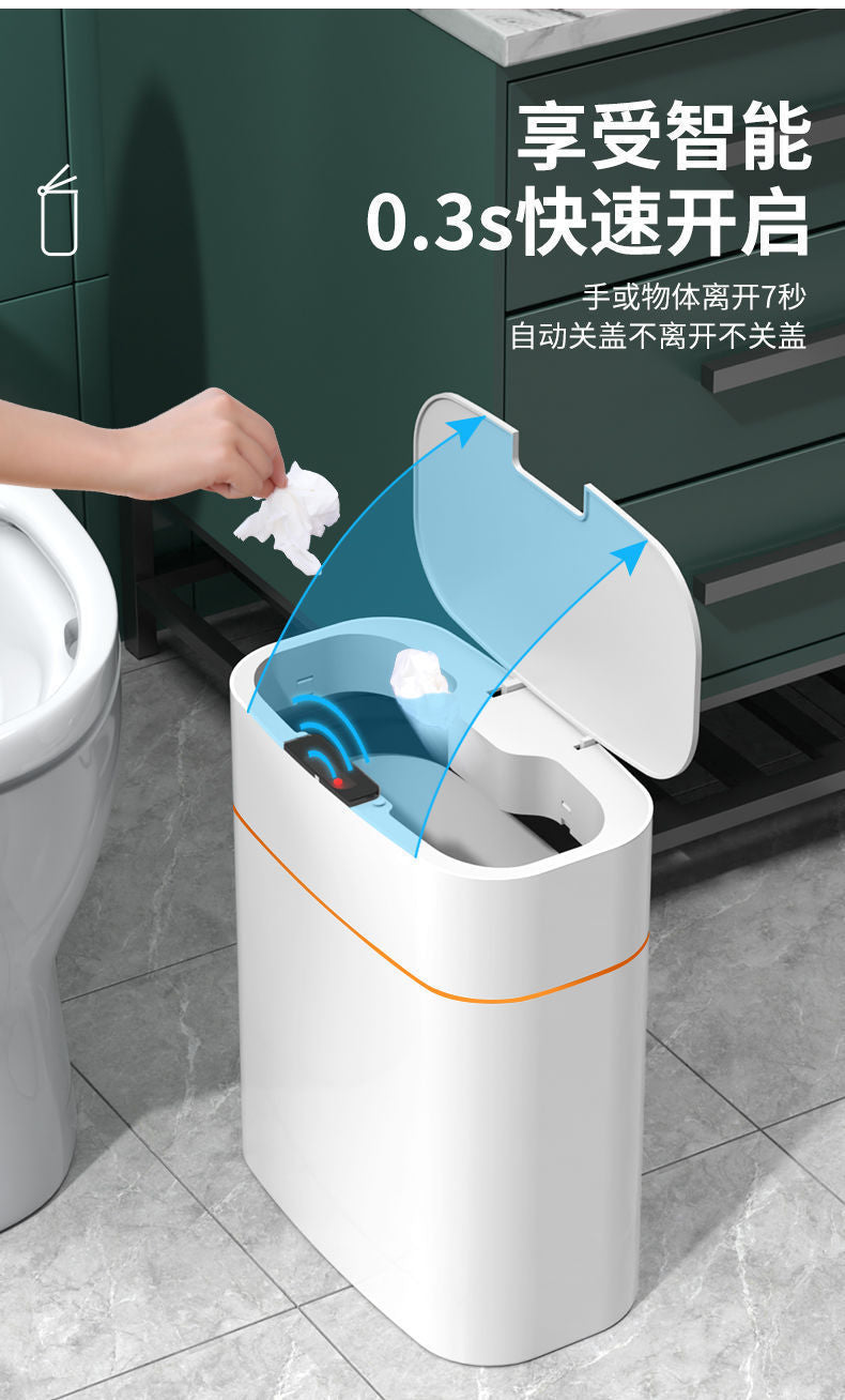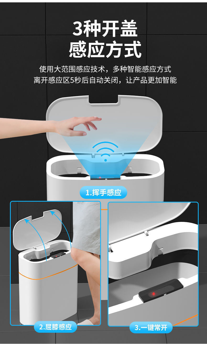 Okay, so like, adulting is hard, right? But keeping your space clean shouldn't be a whole vibe. This isn't your grandma's crusty old trash can. This is a next-level, hands-free, smart sensor trash can that's gonna make your life so much easier. Seriously, imagine never having to actually touch a trash can again. We're talking peak hygiene, people. Just wave your hand, and poof, the lid opens. No more germy hands, no more struggling when your hands are full of takeout leftovers. It's low-key life-changing, fam. The sleek design, it's totally gonna elevate your room's aesthetic. It's giving minimalist chic, and honestly, who doesn't want that? Forget about those bulky, industrial-looking bins. This trash can is designed to blend seamlessly into any space, from your dorm room to your apartment kitchen. Plus, it's super durable, so you know it's gonna last. The smart sensor technology uses power efficiently, so you won't be constantly swapping out batteries. We're talking convenience, style, and sustainability all rolled into one.