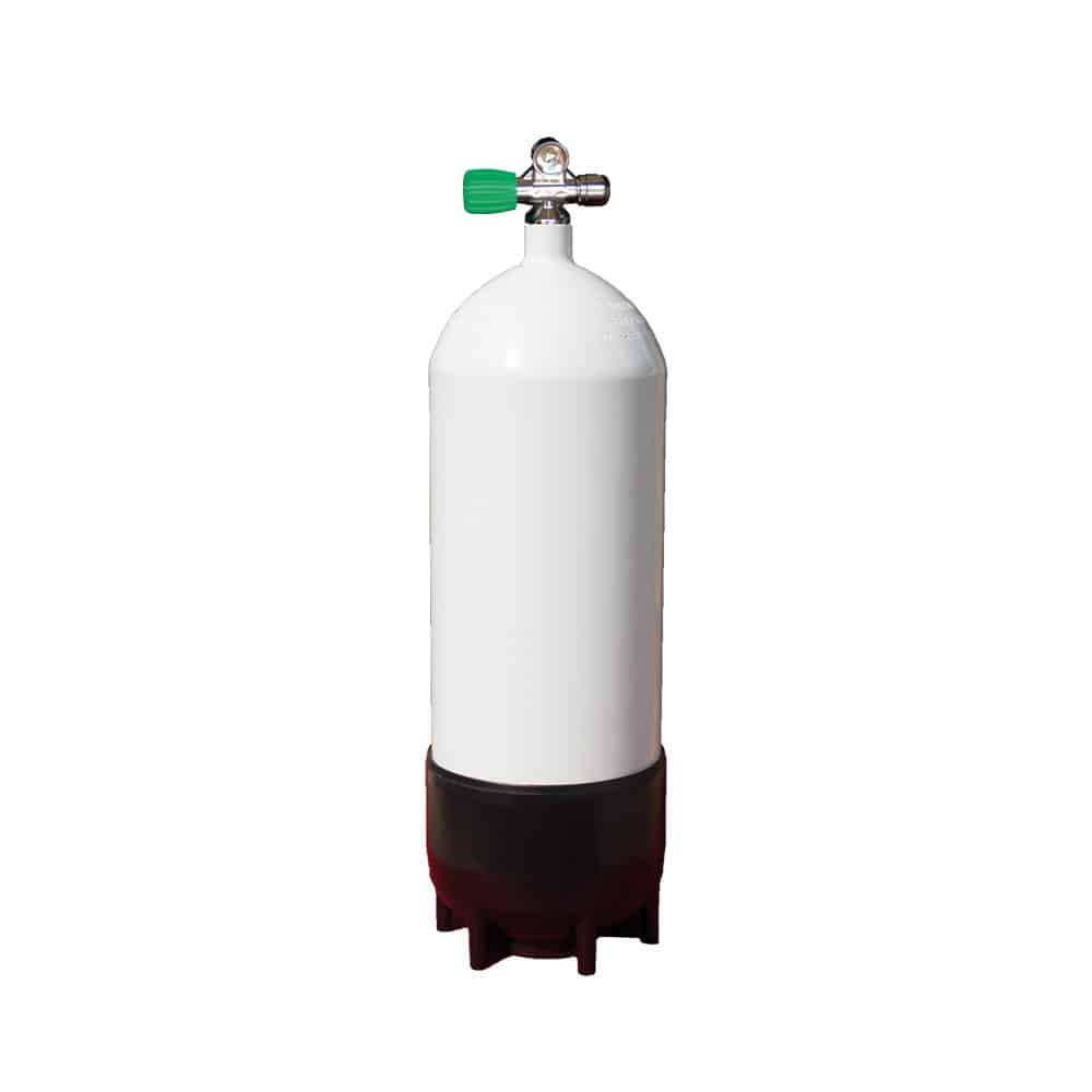 15 Liter Single Steel 230 Bar Left expandable valve inclusive Blind Plug M26/EU-Nitrox 204mm Cylinder Diameter with a rubber knob and included Boot.