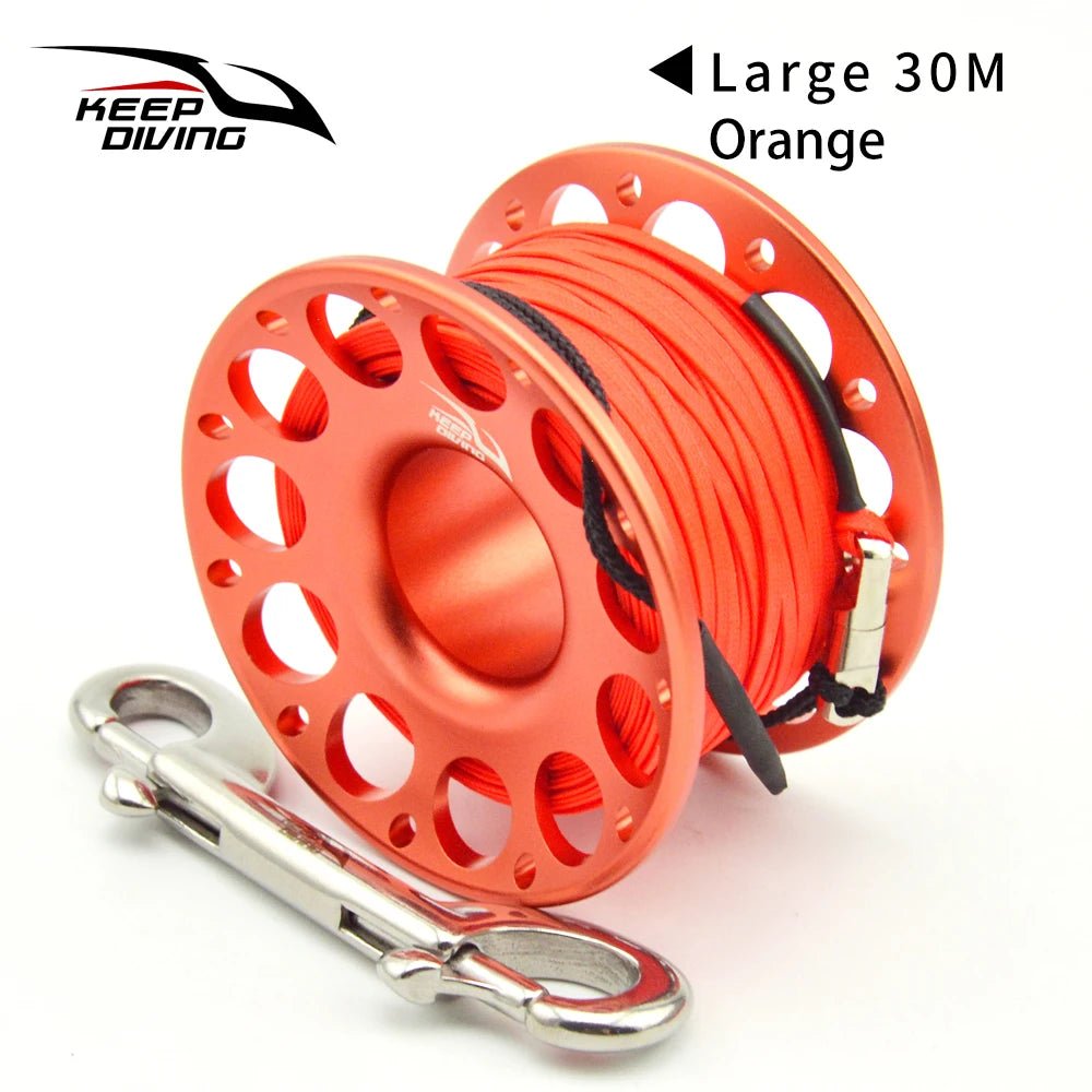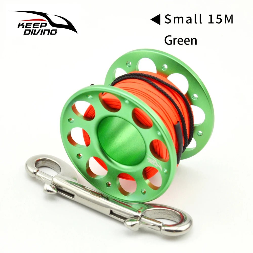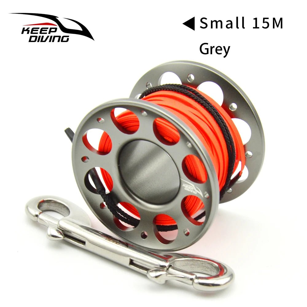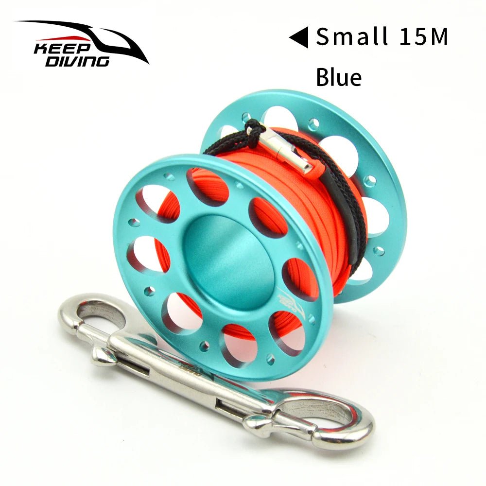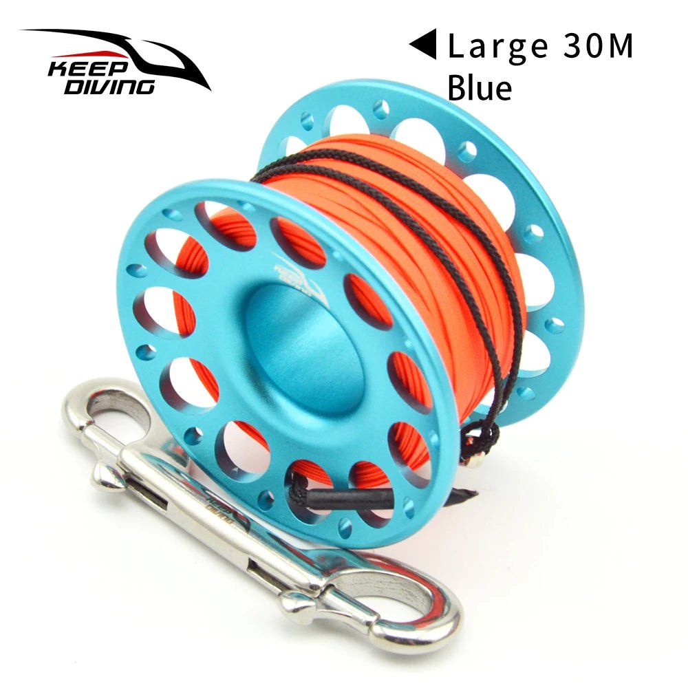 2025 New Summer 15M/30M Scuba Diving Aluminum Alloy Spool Finger Reel with Stainless Steel double ended hook SMB Equipment