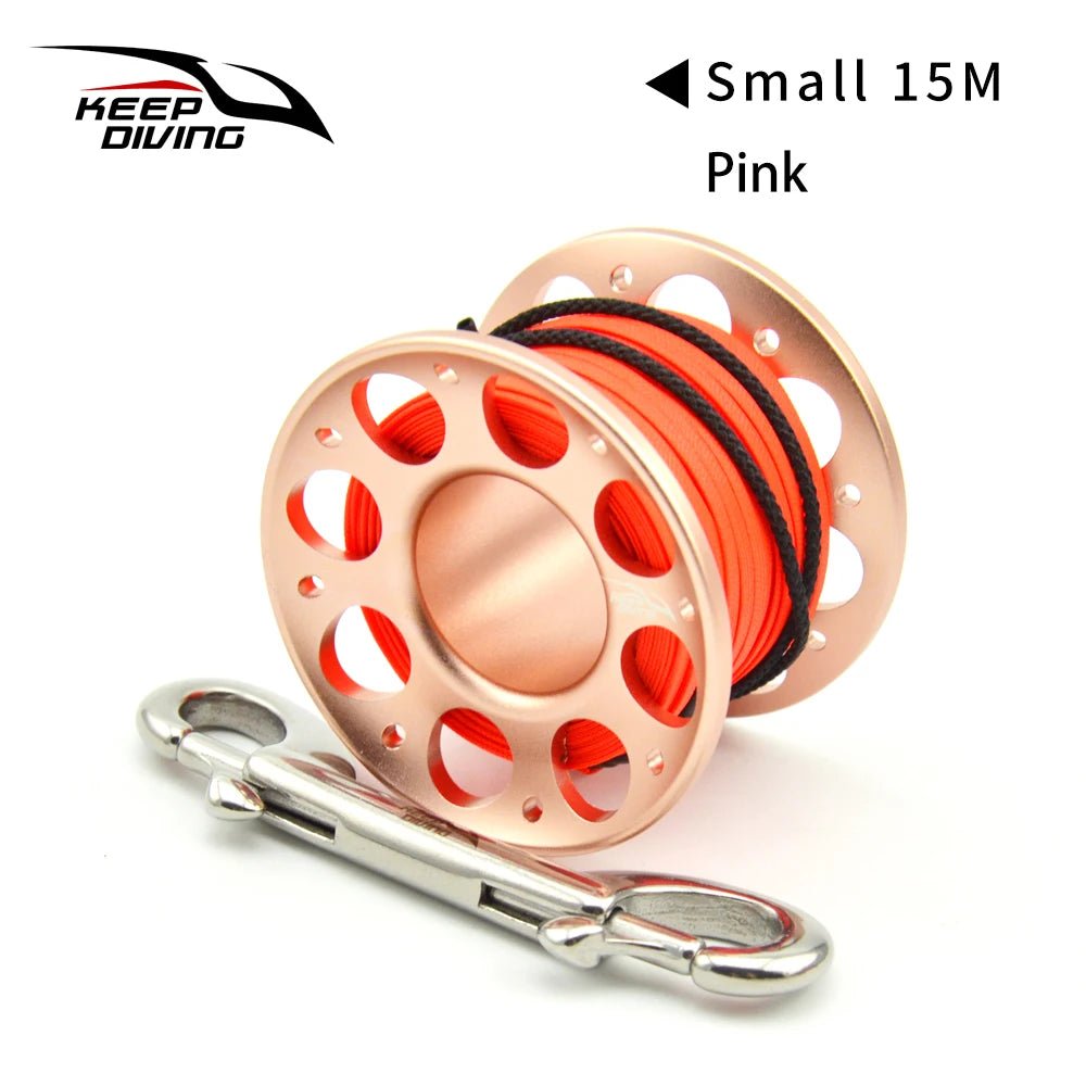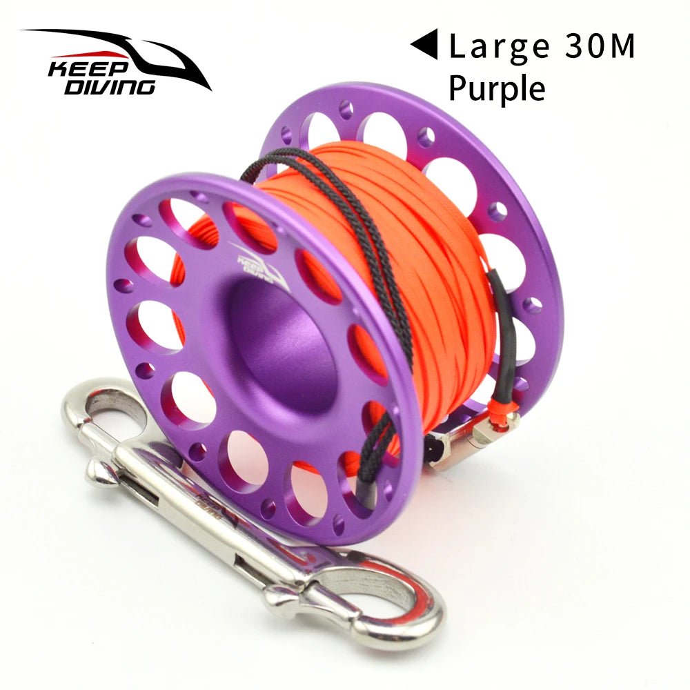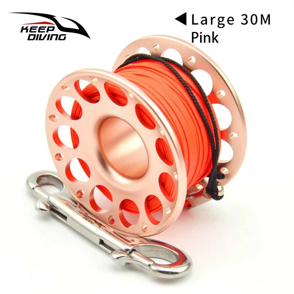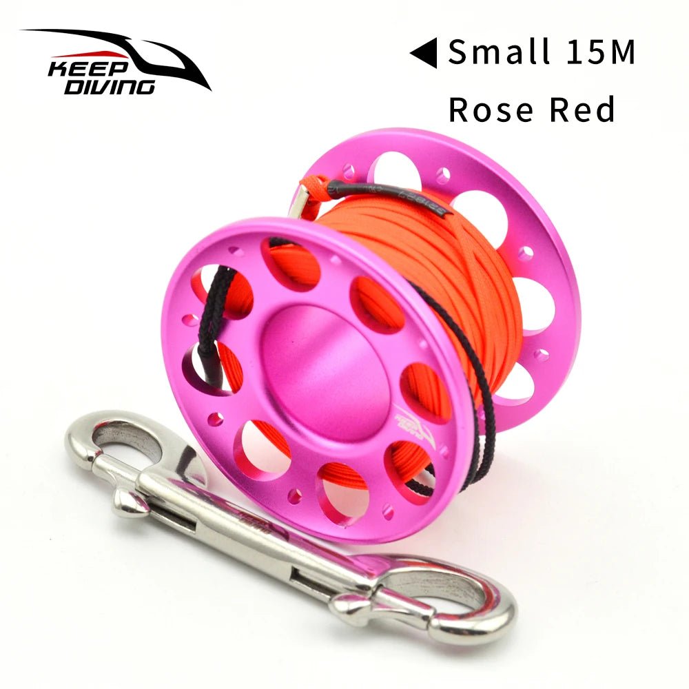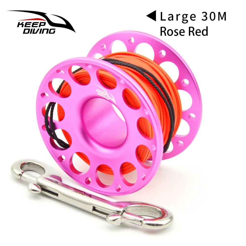 2025 New Summer 15M/30M Scuba Diving Aluminum Alloy Spool Finger Reel with Stainless Steel double ended hook SMB Equipment
