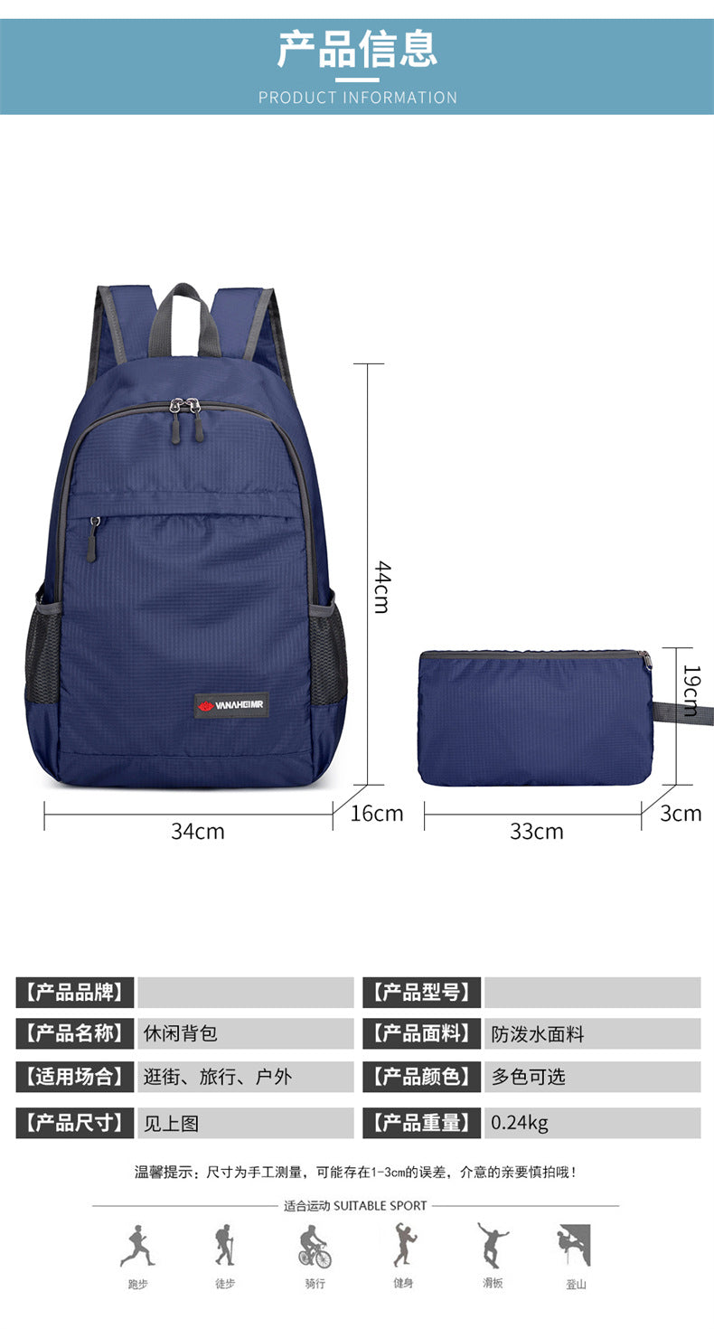 [Foldable and Portable:] Need a backpack on the go but don't want to lug around an empty bag? No problem! This backpack folds down into a super compact size, making it easy to stash in your purse, suitcase, or even your pocket. This is the ultimate space-saving solution for travelers, students, and anyone who needs a backpack that can adapt to their ever-changing needs. Always have access to a backpack when needed.