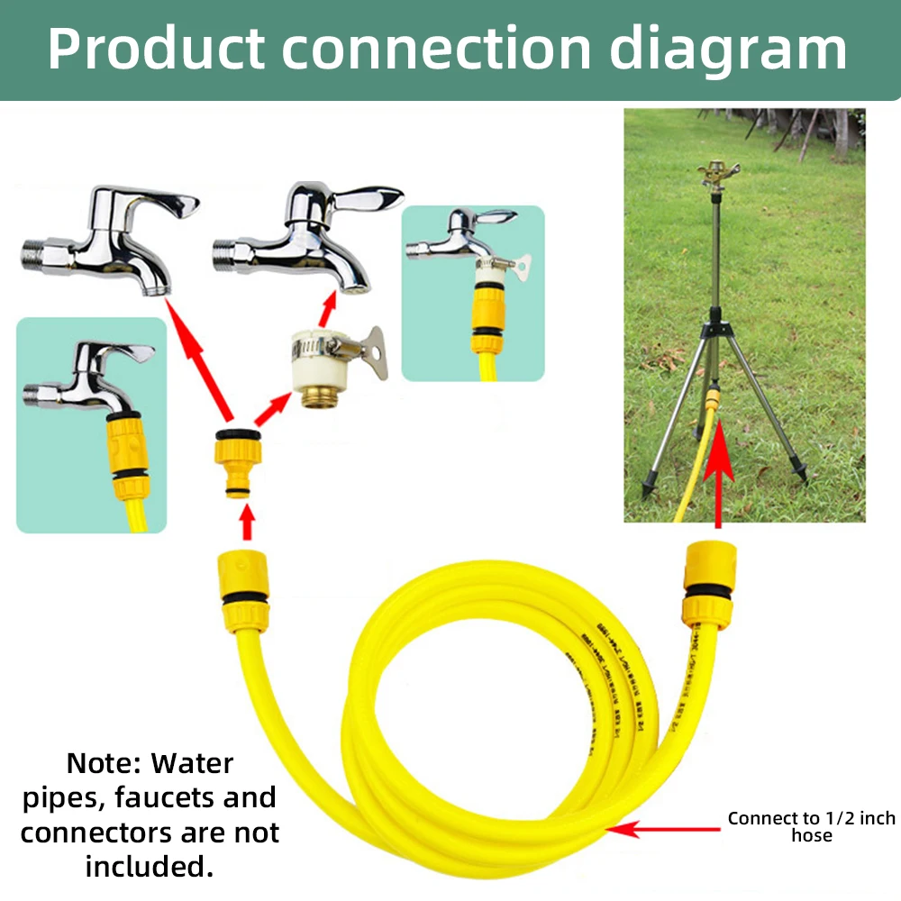 【Widely Applicable】Above ground sprinkler system is suitable for all US standard 1/2 inch garden sprinkler hose. Perfect for yard, lawn, garden, patio, greenhouse, pool, misting, cooling irrigation, dust reduction etc.