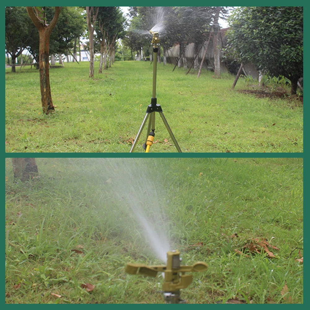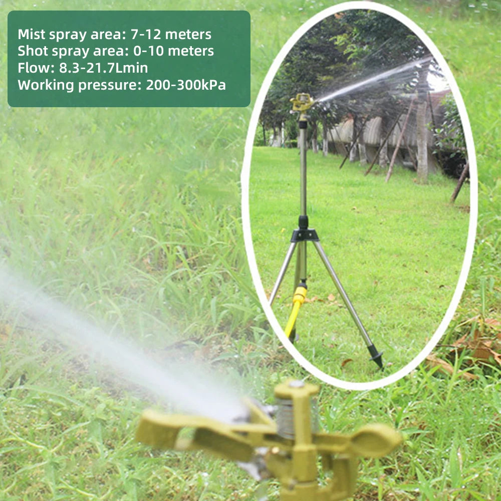 【360° Rotatable】2 types of water sprinkler with tripod base or spike base. Achieve free rotation spray water 0-360 degree. You can adjust the spray distance and spray angle on the sprinkler head according to your needs.