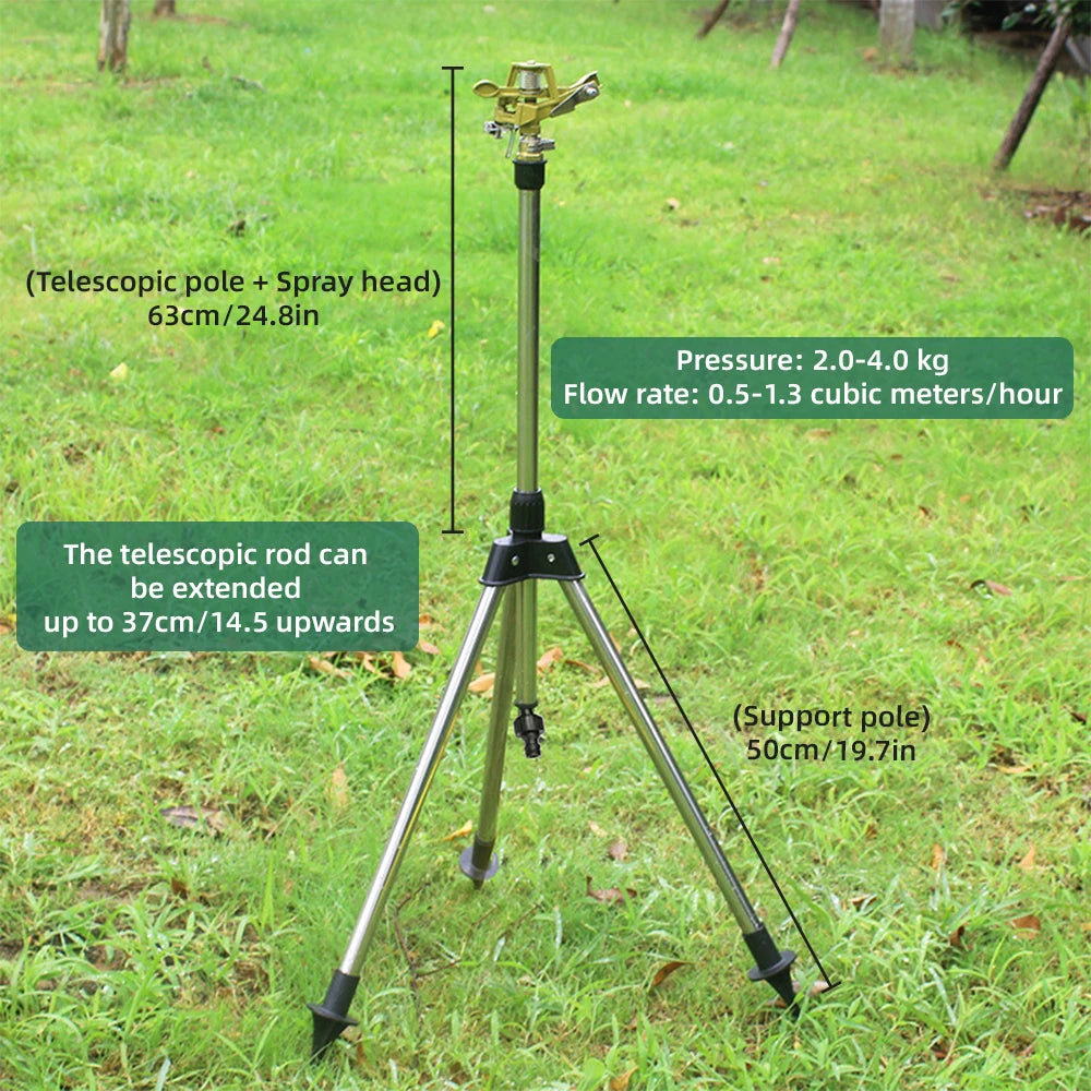 【Easy to Use】The adjustable tripod sprinkler base can be extended from 13 to 27.5 inch. Spike base easy to insert into the ground. Easy to install and operate. Lightweight and easy to take outdoors.