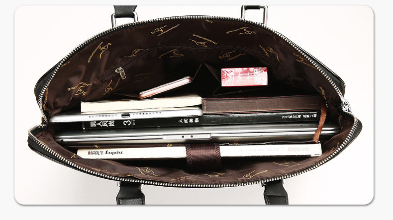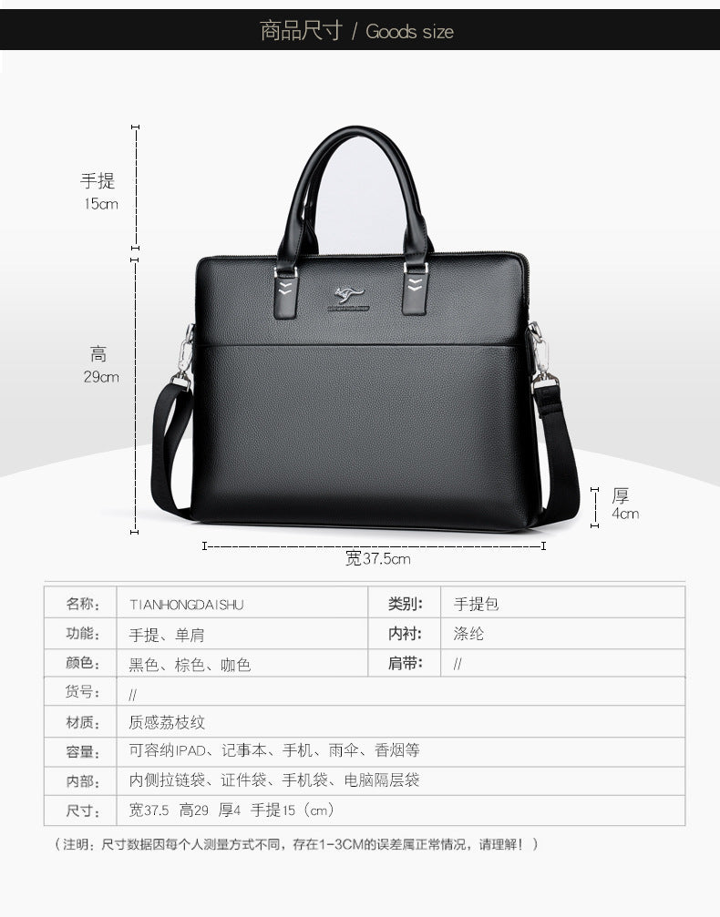 This ain't your grandpa's briefcase. We're talking next-level sophistication and practicality all rolled into one. This sleek shoulder bag is more than just a carrier; it's a whole vibe. Crafted with premium PU leather, this briefcase screams boss-level confidence without even trying. The animal pattern gives it a subtle edge, setting you apart from the basic crowd. Whether you're heading to a major business meeting or just tryna flex at the coffee shop, this bag is gonna elevate your whole look. It's the ultimate blend of business and flex. Choose from classic black or deep brown – or, like, snag both? You do you.
