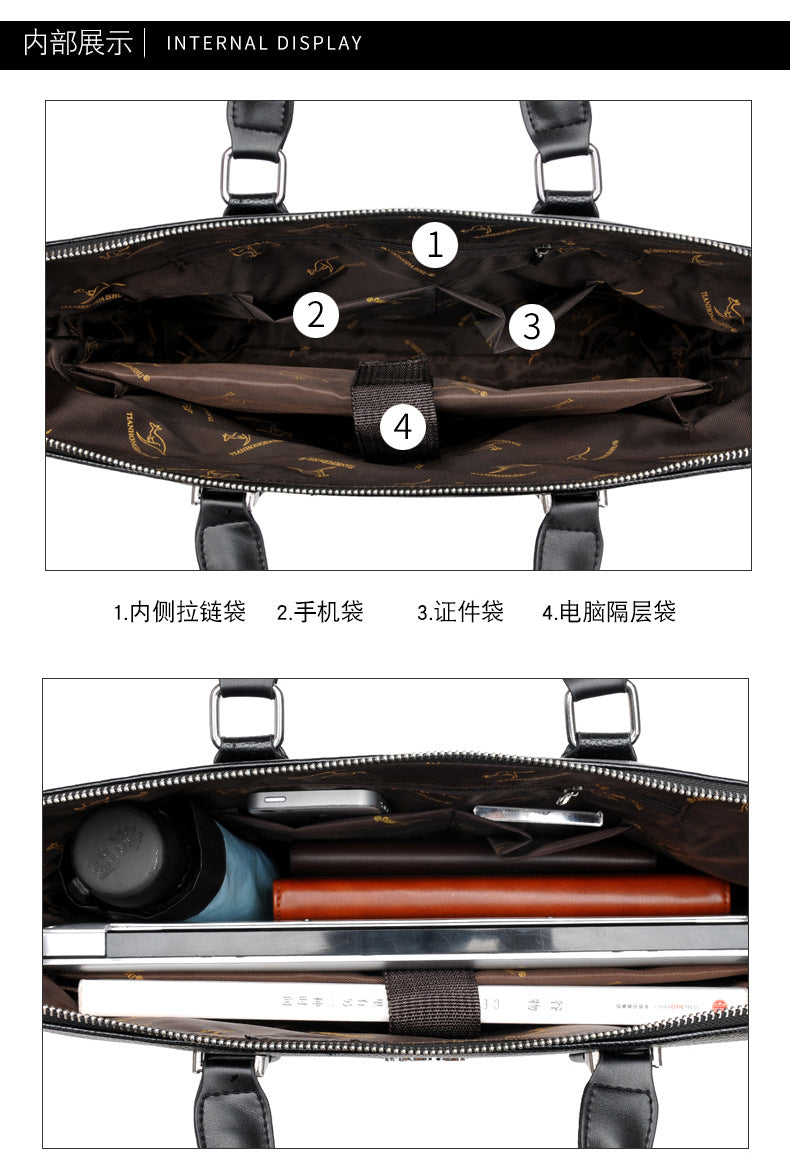 [Style That] Hits Different: This briefcase isn't just a bag; it's a whole mood. The animal pattern adds a subtle flex, so you can show off your personality while still keeping it profesh. [Organization on] Another Level: Stay organized af with this briefcase's interior. It's got space for your laptop, your important papers, and all your other daily essentials. No more rummaging around for your charger when you're already late; with this shoulder bag, you'll have a place for everything. [Built for] The Hustle: Whether you're hitting up a board meeting or just working from a coffee shop, this briefcase is designed to keep up with your busy life. The premium PU leather is durable and easy to clean, so you can focus on your goals. [Versatility is] Key: Rock this briefcase as a shoulder bag, a crossbody, or just carry it by the handle – the choice is yours. It adapts to your style and your needs, making it the ultimate accessory for any situation. [Color Options] Galore: With multiple color options, you can find the perfect briefcase to match your aesthetic. Go classic with black, or add a touch of warmth with deep brown. This shoulder bag also includes a few additional item combos depending on the style.