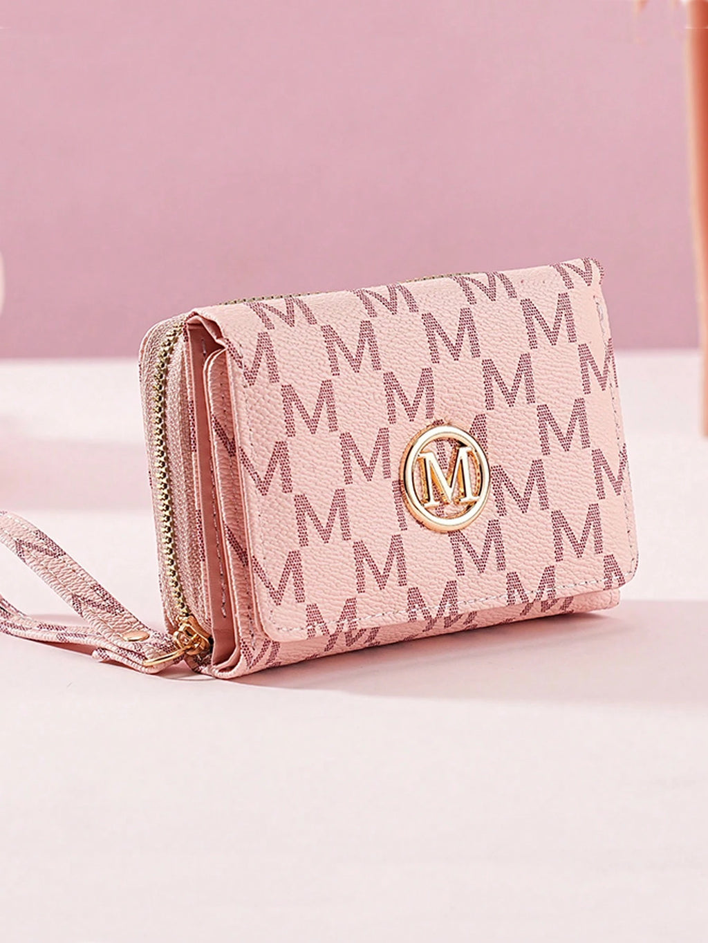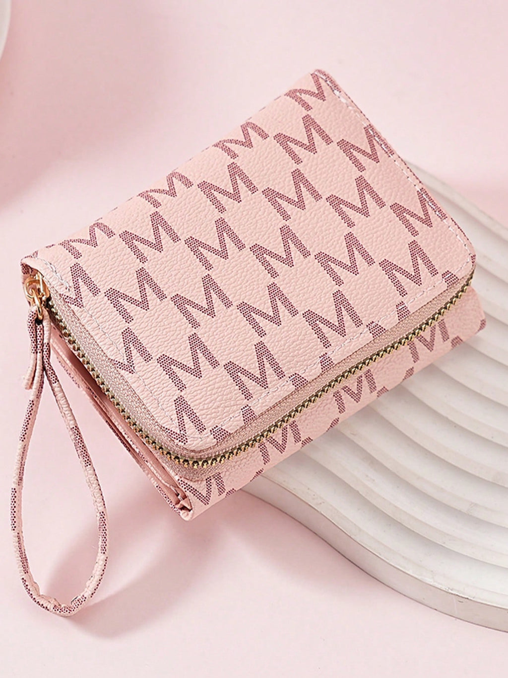 Type : Small Wallet Details : Letter Pattern Type : All Over Print Style : Casual Features : Foldable Closure Type : Zipper Color : Pink Strap Type : Chain Material : PU Leather Gender : Women