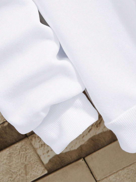Color: White Style: Casual Type: Pullovers Pattern Type: Plain Neckline: Round Neck Sleeve Length: Long Sleeve Sleeve Type: Drop Shoulder Length: Regular Fit Type: Loose Fabric: Slight Stretch Material: Fabric Composition: 100% Polyester Care Instructions: Machine wash or professional dry clean Temperature: Late Fall 10-17℃/50-63℉ Lined For Added Warmth: Yes Sheer: No
