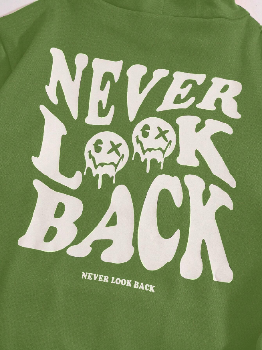 Color: Green Style: Casual Type: Pullovers Pattern Type: Slogan, Cartoon Details: Drawstring, Pocket Neckline: Hooded Sleeve Length: Long Sleeve Sleeve Type: Regular Sleeve, Drop Shoulder Length: Regular Fit Type: Regular Fit Fabric: Slight Stretch Material: Knitted Fabric Composition: 100% Polyester Care Instructions: Machine wash or professional dry clean Temperature: Spring/Fall 18-25℃/63-77℉ Sheer: No