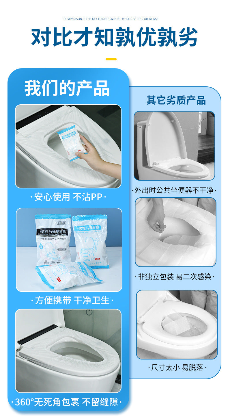 These aren't your grandma's toilet seat covers. These are low-key genius! They’re crafted from non-woven fabric, making them both comfy and durable. Whether you're rocking the classic printed double layer or keeping it simple with a single layer, these covers got you covered. We even have elongated versions for those fancy intelligent toilets that are boujee AF. Forget those sketchy public restrooms – these covers will give you the peace of mind you deserve, so you can focus on slaying your day, not stressing about hygiene. Period!
