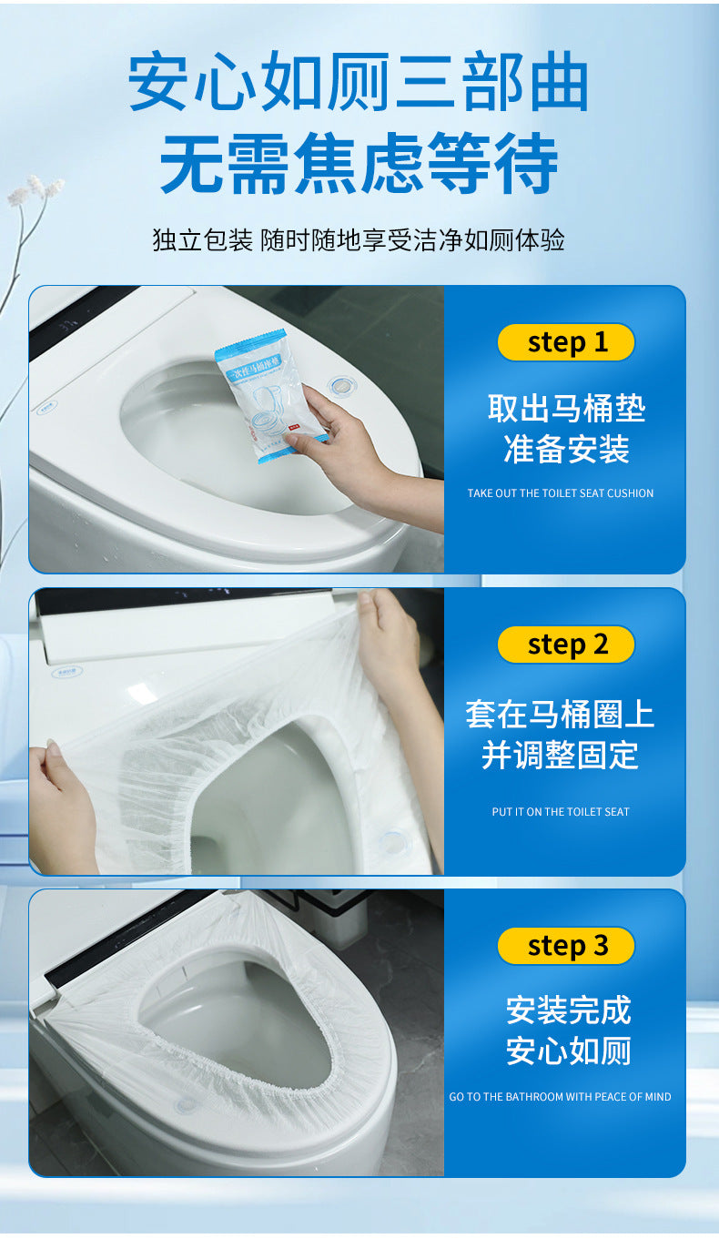 [Easy Disposal] Using these seat covers is a breeze! Just whip one out, slap it on the toilet seat, and do your business. When you're done, just toss it in the trash. No muss, no fuss. It's all about convenience, baby! Plus, knowing you're not contributing to the germ situation is a total win-win. 😌