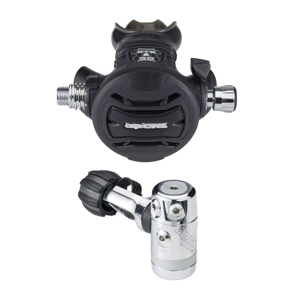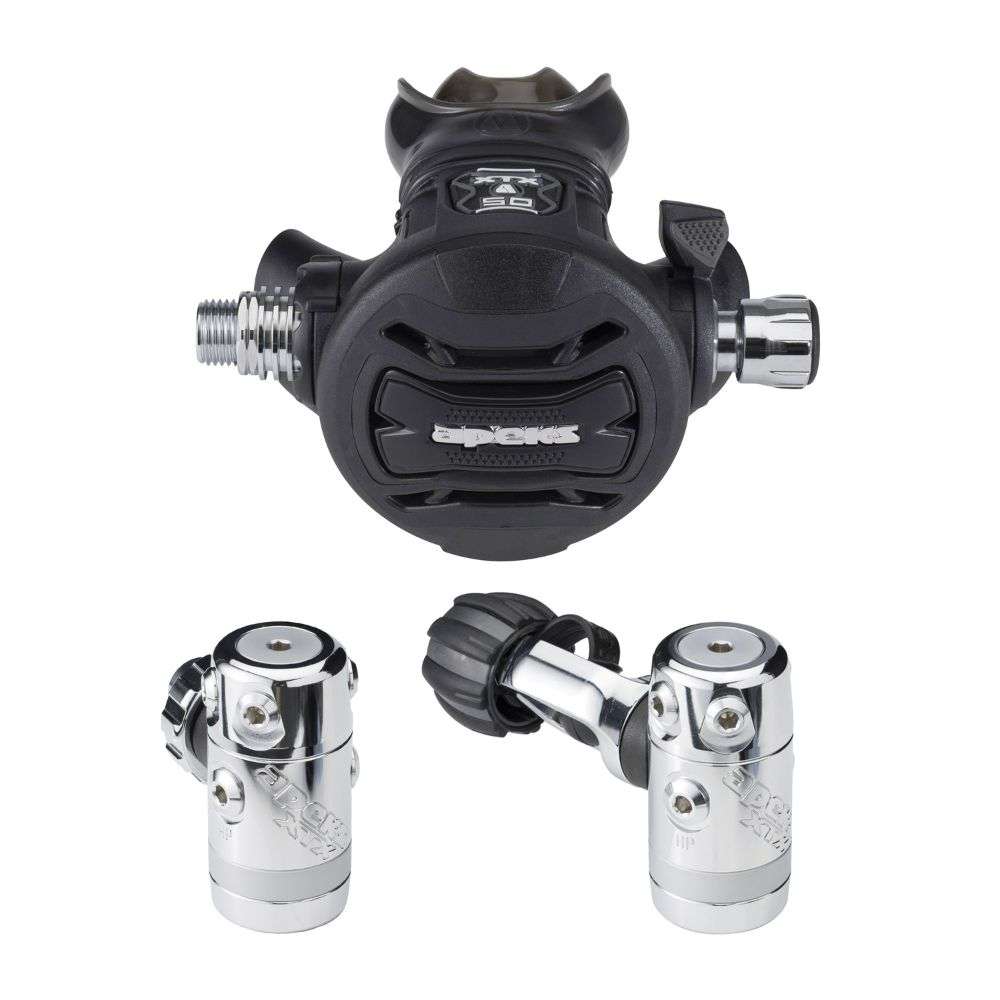 The XTX50 is for the discerning diver who wants the benefits of a feature-rich regulator at a moderate price. This popular regulator has four medium-pressure ports all mounted on a rotating turret, resulting in optimal hose routing while eliminating sharp bends in the hose.