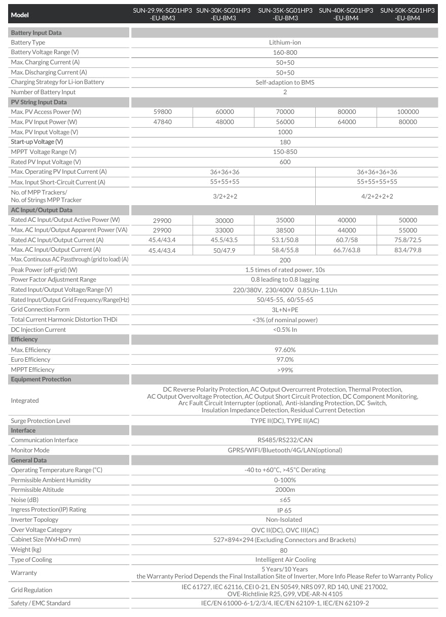 Max. 10 pcs parallel for on-grid and off-gridoperation; Support multiple batteries parallel