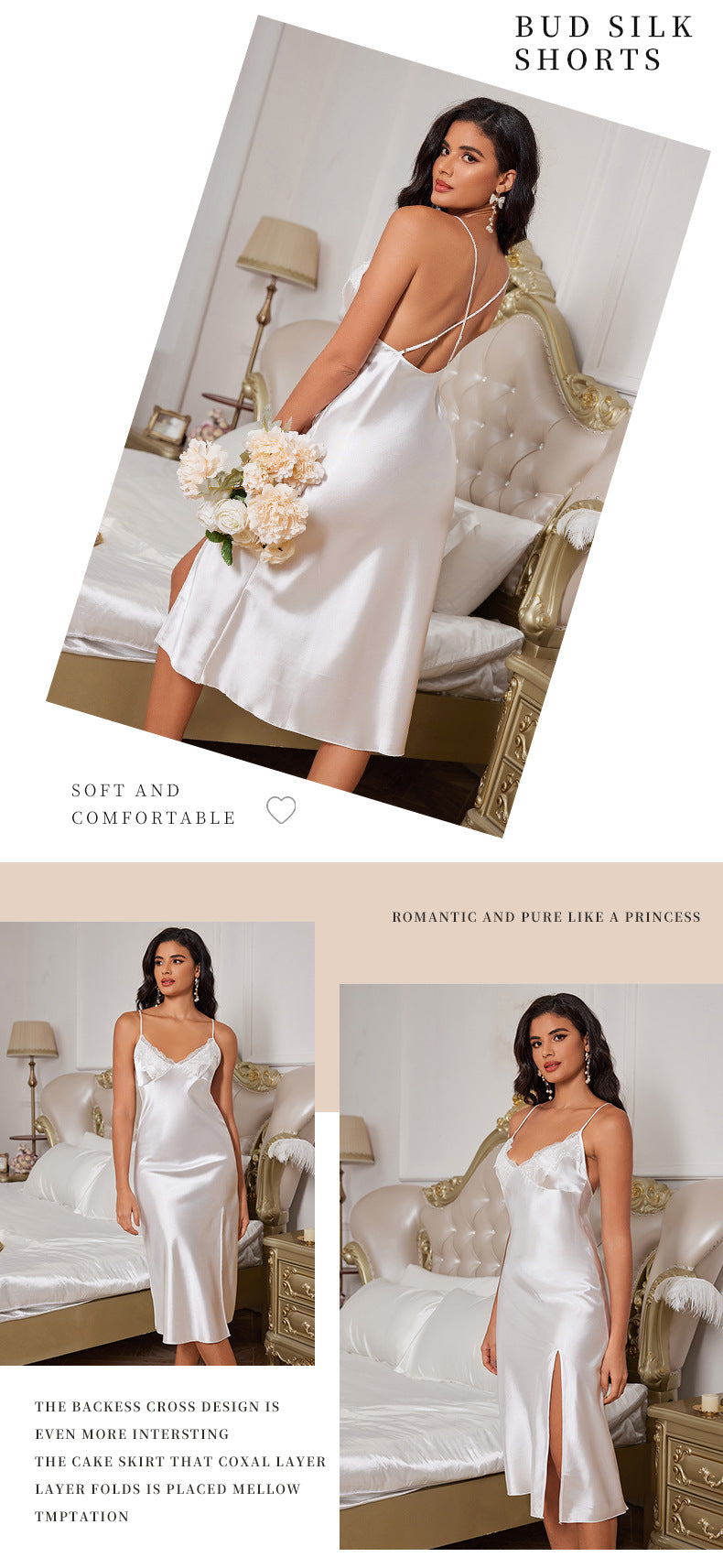 [Silky Softness] Imagine wrapping yourself in pure luxury. The faux silk fabric is so smooth and gentle against your skin, you'll feel like you're sleeping on a cloud. Say goodbye to scratchy PJs and hello to ultimate comfort and silk slip dress dreams. Trust, your skin will thank you.