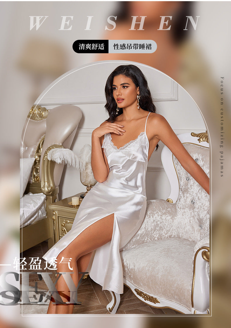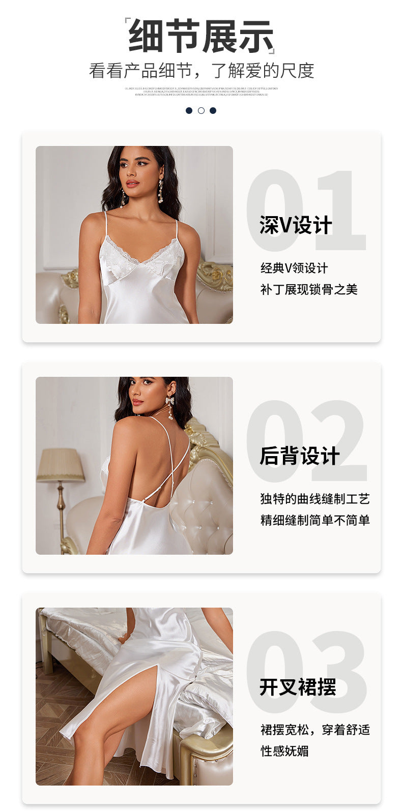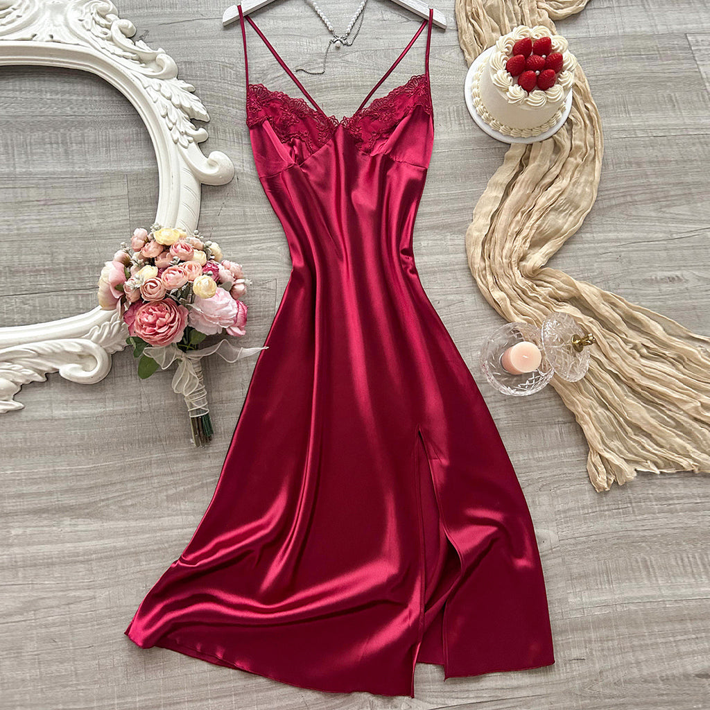 This ain't your grandma's nightgown, trust. This is a whole mood. The lightweight, breathable fabric keeps you cool and comfy all night long, even during those summer heatwaves. It's perfect for tossing in your weekend bag for a boujee getaway or just vibing at home with your squad. The V-neck design is subtly seductive, while the adjustable straps ensure the perfect fit. Basically, it's the ultimate combination of sexy and snuggly, and we're here for it. Get ready to level up your sleepwear game and feel like the main character you were always meant to be. This sleepwear is more than just fabric; it's an experience. You can search lace silk slip dress online for similar options to enhance your research.