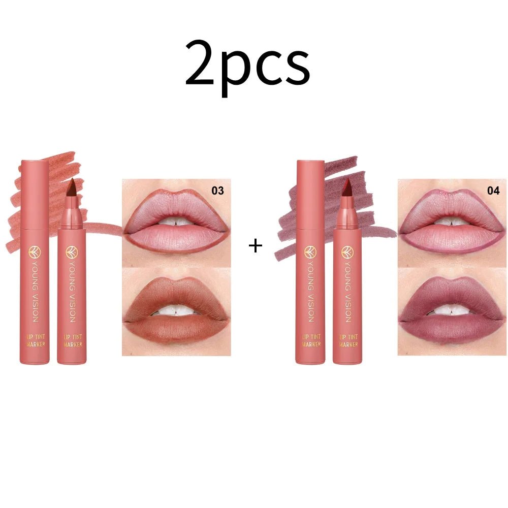 Lip Tint Pen, 6 Colors Available, Matte Water Lipstick, Non-Stick Cup, Long-Lasting, Smooth Lip Liner and Lip Stain Combo