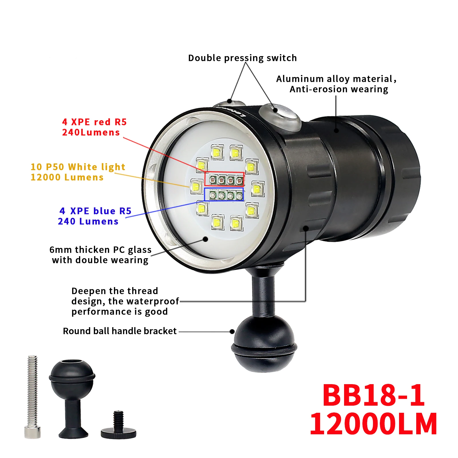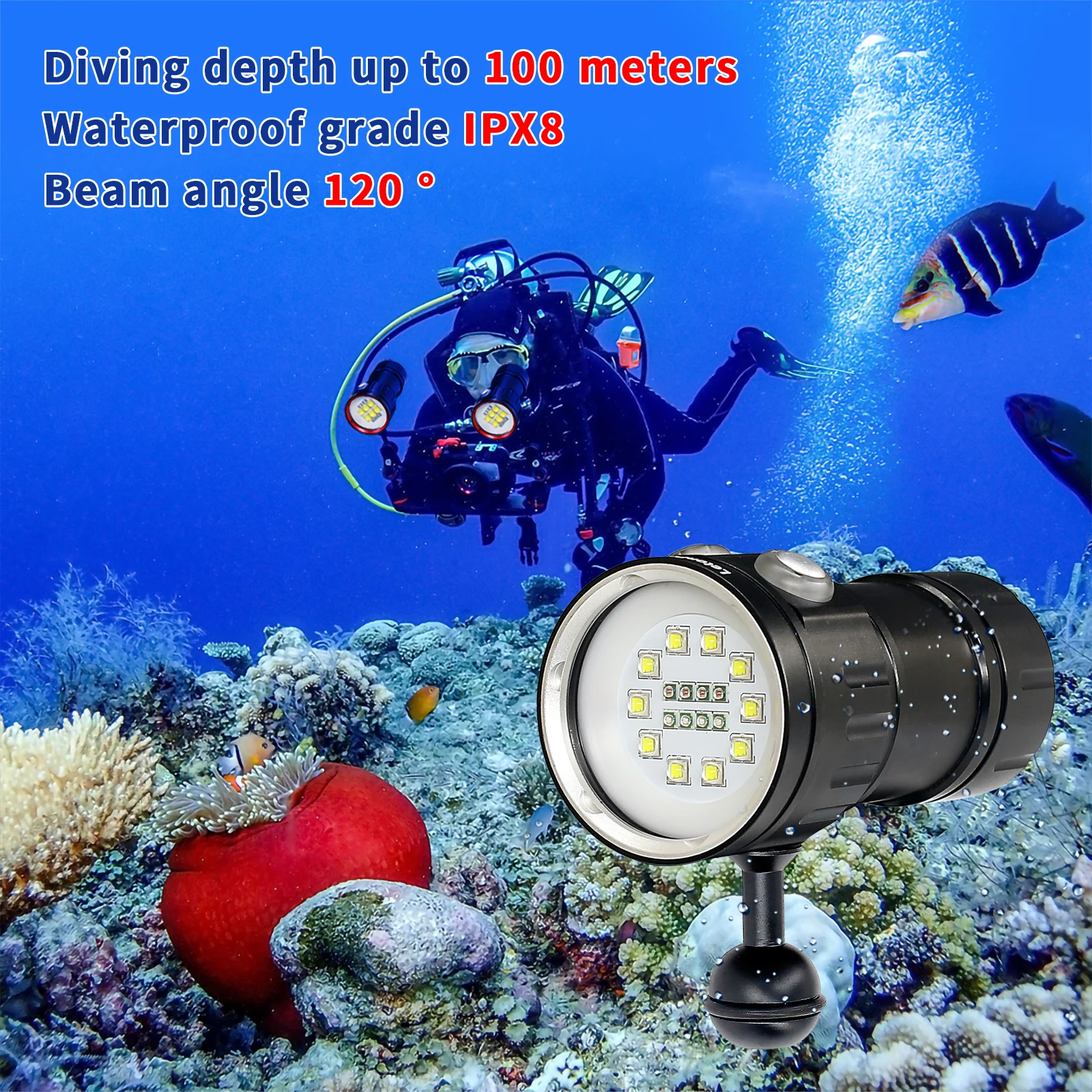 Professional Underwater 27 LED Photography Light Highlight Lamp 20000 Lumens Diving Flashlight 100M Waterproof Video Camera torch