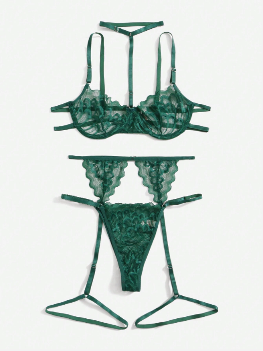 ROMWE Kawaii 3pack Floral Lace Underwire Garter Lingerie Set