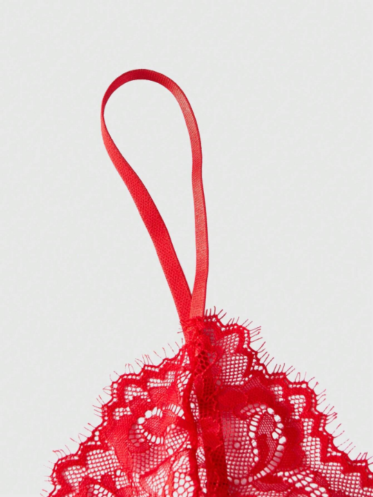 Color: Red Neckline: Spaghetti Strap Type: Teddies Pattern Type: Floral, Plain Style: Sexy Bra Type: Bralettes Panty Type: V-strings Rise: Mid Rise Details: Cut Out, Sheer, Backless Fabric: Medium Stretch Material: Lace Composition: 95% Polyester, 5% Elastane Care Instructions: Machine wash or professional dry clean