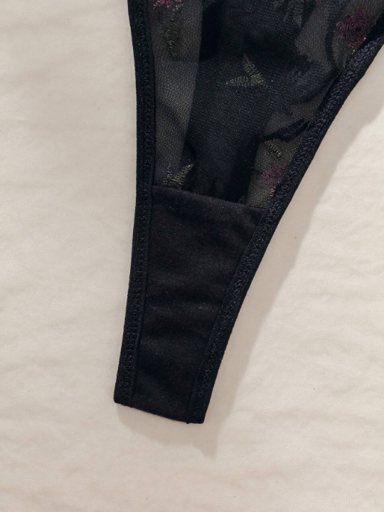 Color: Black Neckline: Spaghetti Strap Type: Sexy Sets Pattern Type: Floral Style: Sexy Bra Type: Triangle Panty Type: Thongs Number of Pieces: 2 Piece Set Rise: Low Rise Details: Embroidery, Sheer Fabric: Medium Stretch Care Instructions: Machine wash, do not dry clean Tops Material: Embroidery Tops Composition: 95% Polyester, 5% Elastane