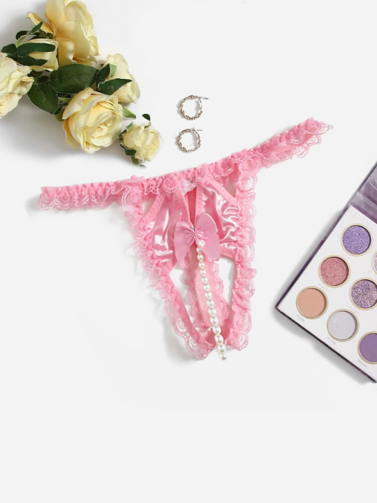 Color: Pink Style: Romantic-Romantic Details: Cut Out Panty Type: Thongs Rise: Low Rise Fabric: Slight Stretch Material: Lace Composition: 80% Polyester, 20% Polyamide Care Instructions: Hand wash,do not dry clean Sheer: Yes