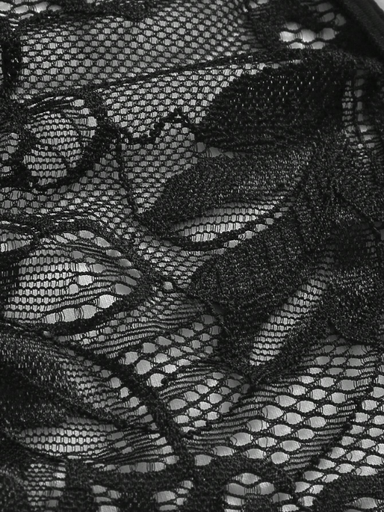 Color: Black Style: Romantic-Romantic Type: Sexy Sets Details: Contrast Lace, Cut Out Number of Pieces: 4 Piece Set Bra Type: Demi Bras Panty Type: Thongs Rise: Low Rise Fabric: Slight Stretch Care Instructions: Hand wash,do not dry clean Sheer: Yes Support: Light Support Pants & Tops Material: Lace Pants & Tops Composition: 95% Polyester, 5% Elastane