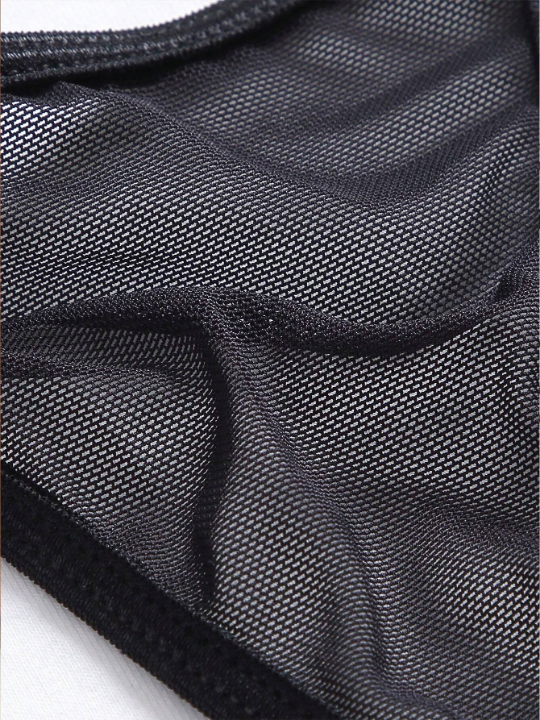 Color: Black Details: Rhinestone Panty Type: Thongs Rise: Low Rise Fabric: Slight Stretch Material: Mesh Fabric Composition: 94% Polyester, 6% Elastane Care Instructions: Hand wash,do not dry clean Sheer: Yes