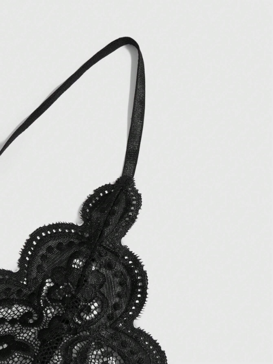 Color: Black Type: Teddies Neckline: Spaghetti Strap Details: Criss Cross, Scallop Fabric: Slight Stretch Material: Lace Composition: 95% Polyester, 5% Elastane Care Instructions: Hand wash,do not dry clean