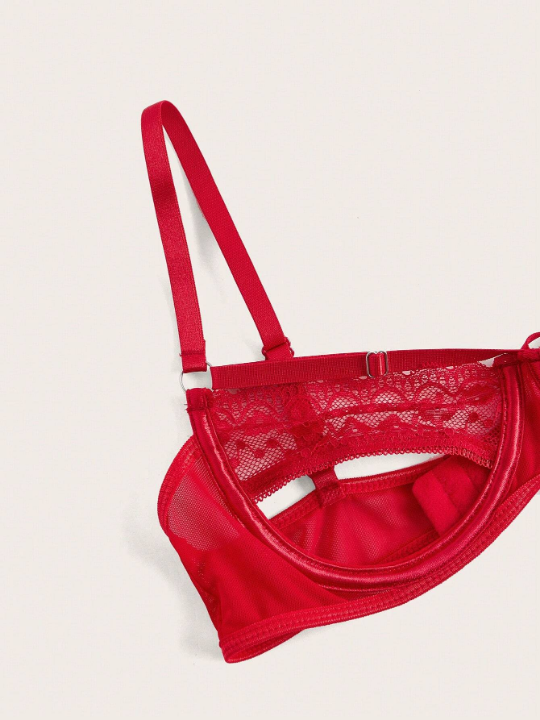 Color: Red Type: Bras Neckline: Spaghetti Strap Details: Contrast Lace, Cut Out Fabric: Slight Stretch Material: Lace Composition: 95% Polyester, 5% Elastane Care Instructions: Machine wash or professional dry clean