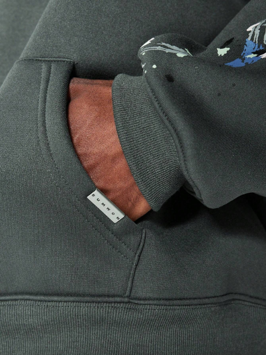 Color: Dark Grey Style: Casual Type: Pullovers Pattern Type: Graphic Details: Pocket Neckline: Hooded Sleeve Length: Long Sleeve Sleeve Type: Drop Shoulder Length: Long Fit Type: Loose Fabric: Slight Stretch Material: Knitted Fabric Composition: 100% Polyester Care Instructions: Machine wash or professional dry clean Temperature: Winter <10℃/50℉ Body: Unlined Lined For Added Warmth: Yes Sheer: No