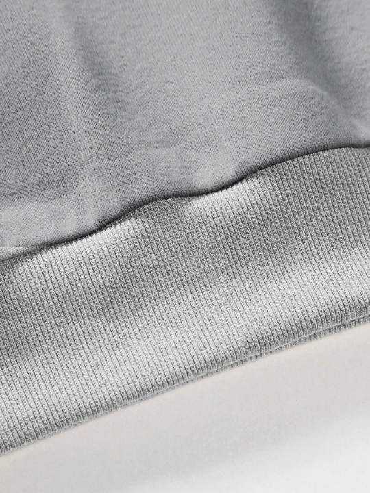 Color: Grey Style: Casual Type: Pullovers Pattern Type: Letter Details: Patched Neckline: Round Neck Sleeve Length: Long Sleeve Sleeve Type: Drop Shoulder Length: Regular Fit Type: Oversized Fabric: Non-Stretch Material: Fabric Composition: 100% Cotton Care Instructions: Hand wash,do not dry clean Sheer: No