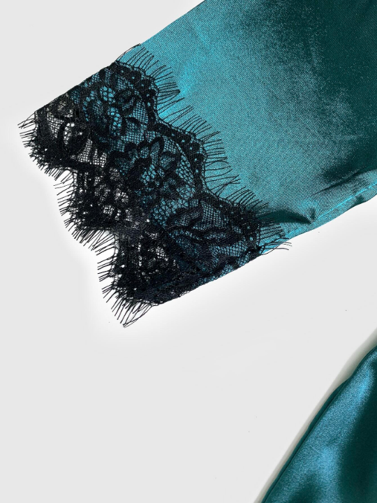 Color: Dark Green Type: Robes Pattern Type: Colorblock Bra Type: Longline, Bralettes Panty Type: Bikinis Number of Pieces: 4 Piece Set Rise: Mid Rise Details: Belted, Scallop Fabric: Non-Stretch Care Instructions: Hand wash,do not dry clean Tops Material: Fabric Tops Composition: 90% Polyamide, 10% Elastane